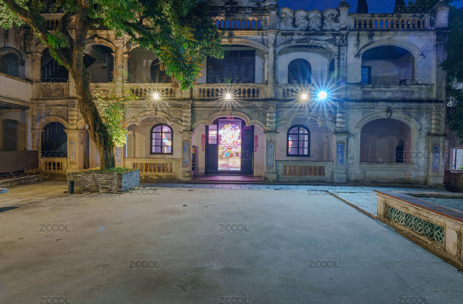 佛山岭南天地龙塘诗社中式传统建筑夜景灯光