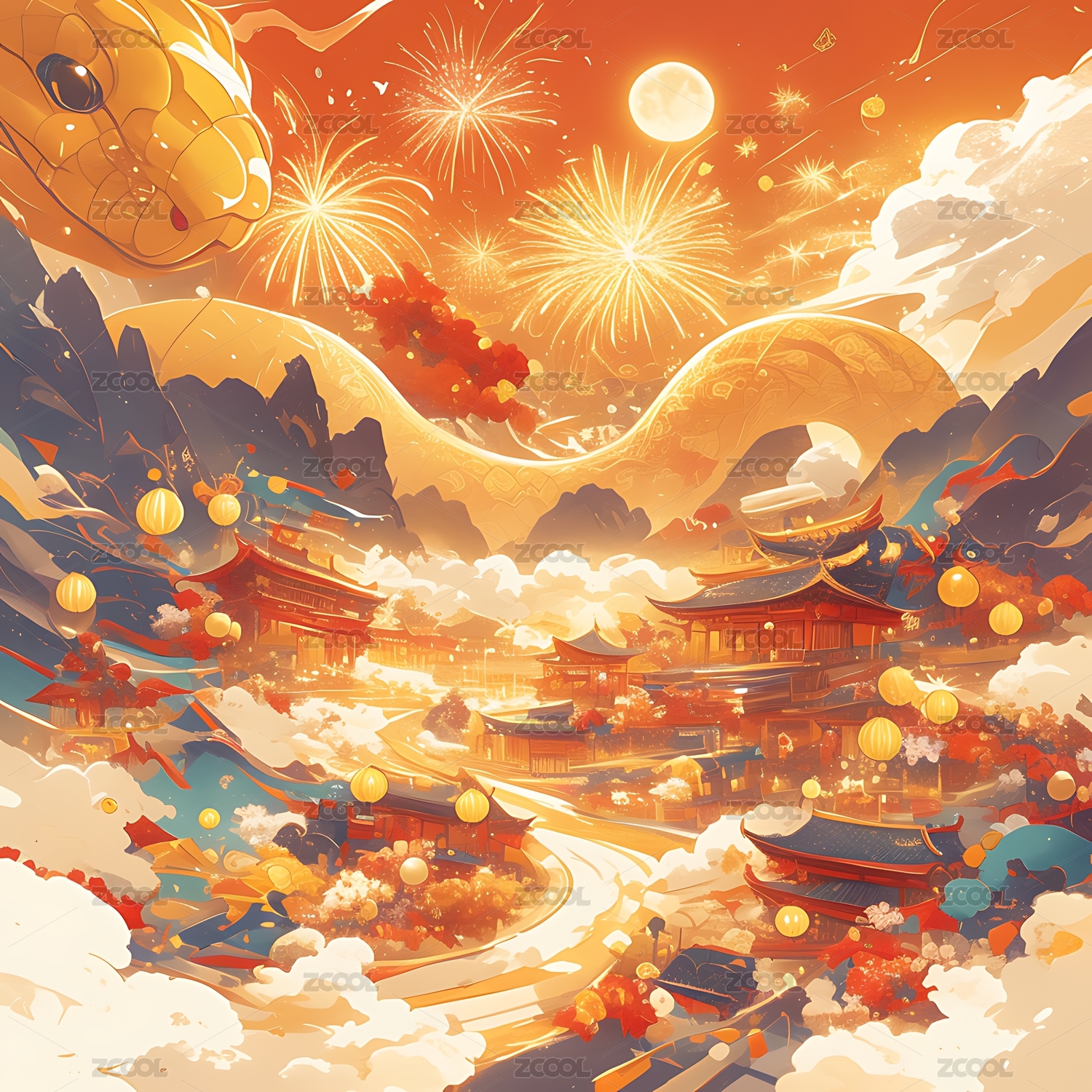 牛年节日插画手绘传统国风习俗文化国潮春节