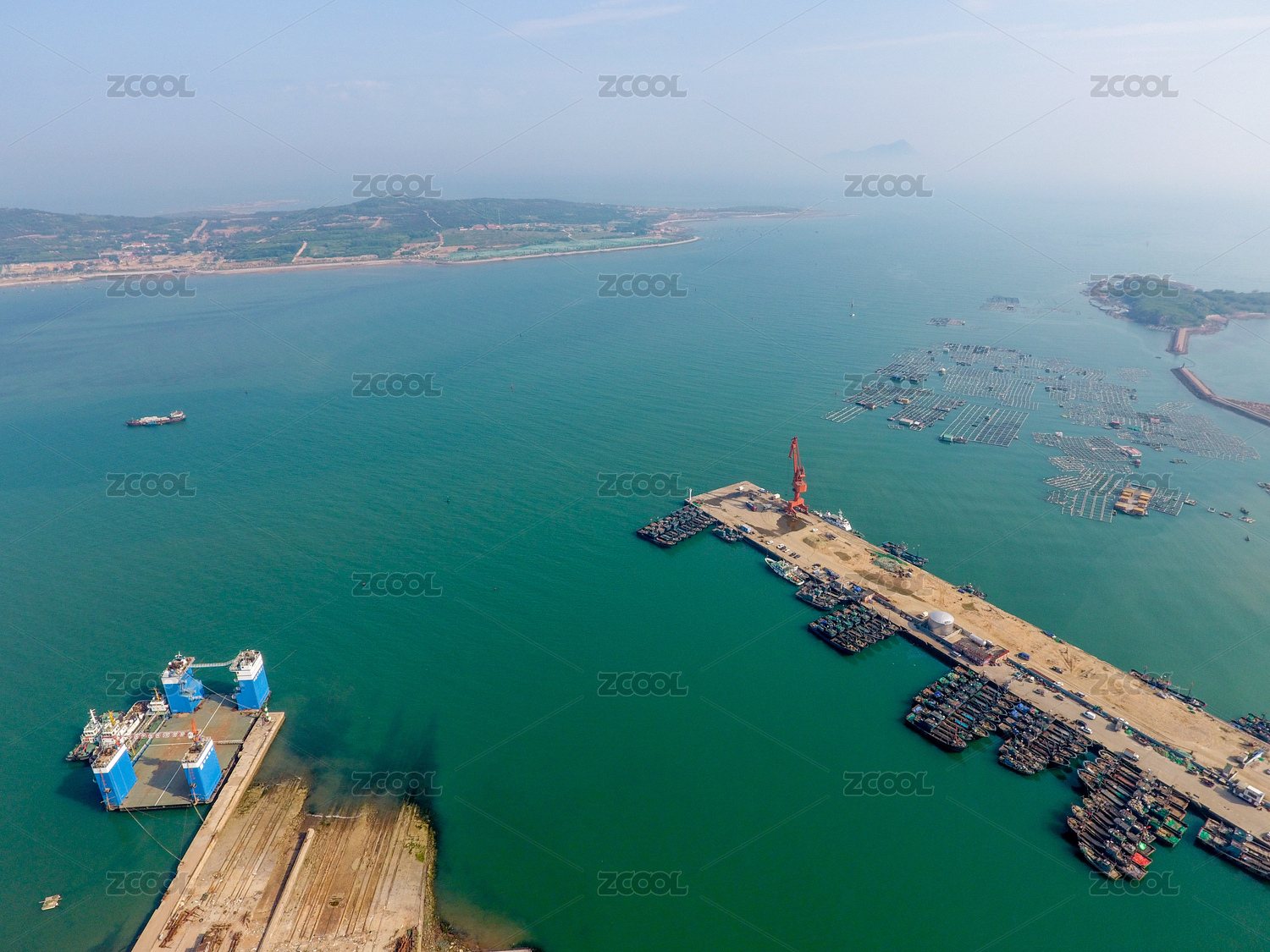 航拍福建平潭岛上的造船厂和码头