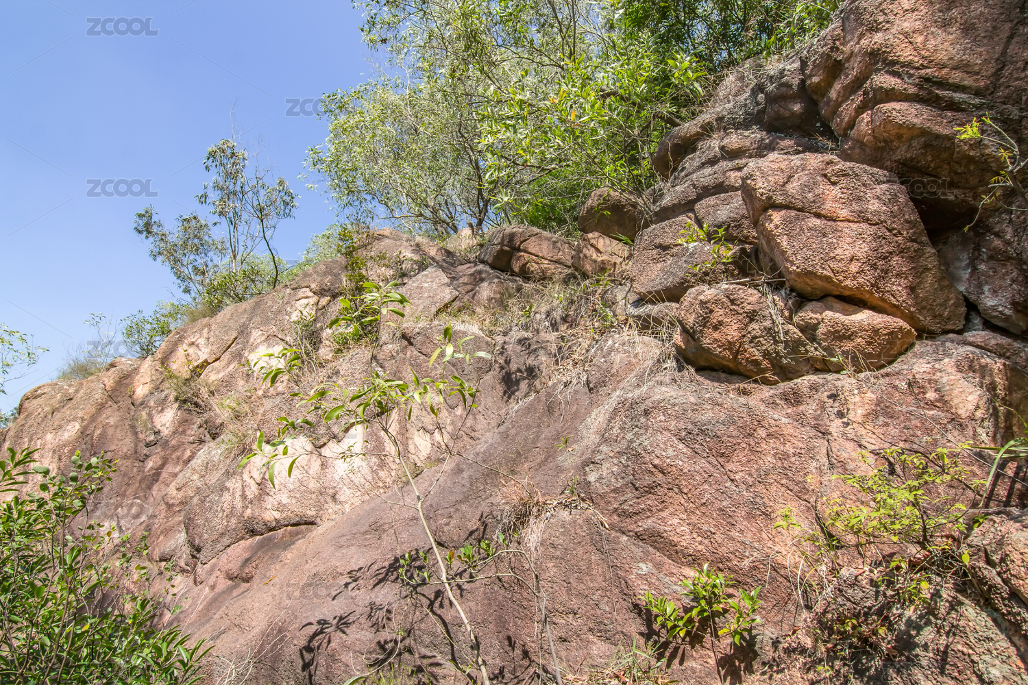 晴天野外山中嶙峋山石石壁怪石自然风光