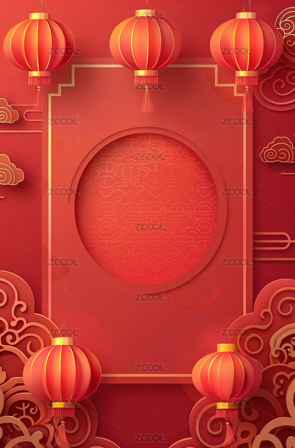 八月十五中秋节中国传统节日古典挂灯笼插画