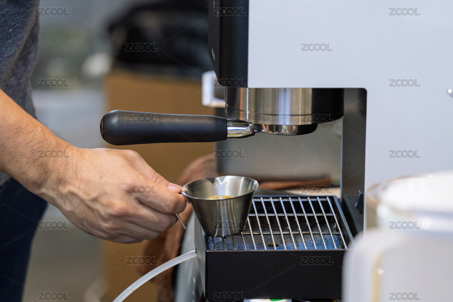 咖啡师正在使用专业咖啡机制作浓缩咖啡