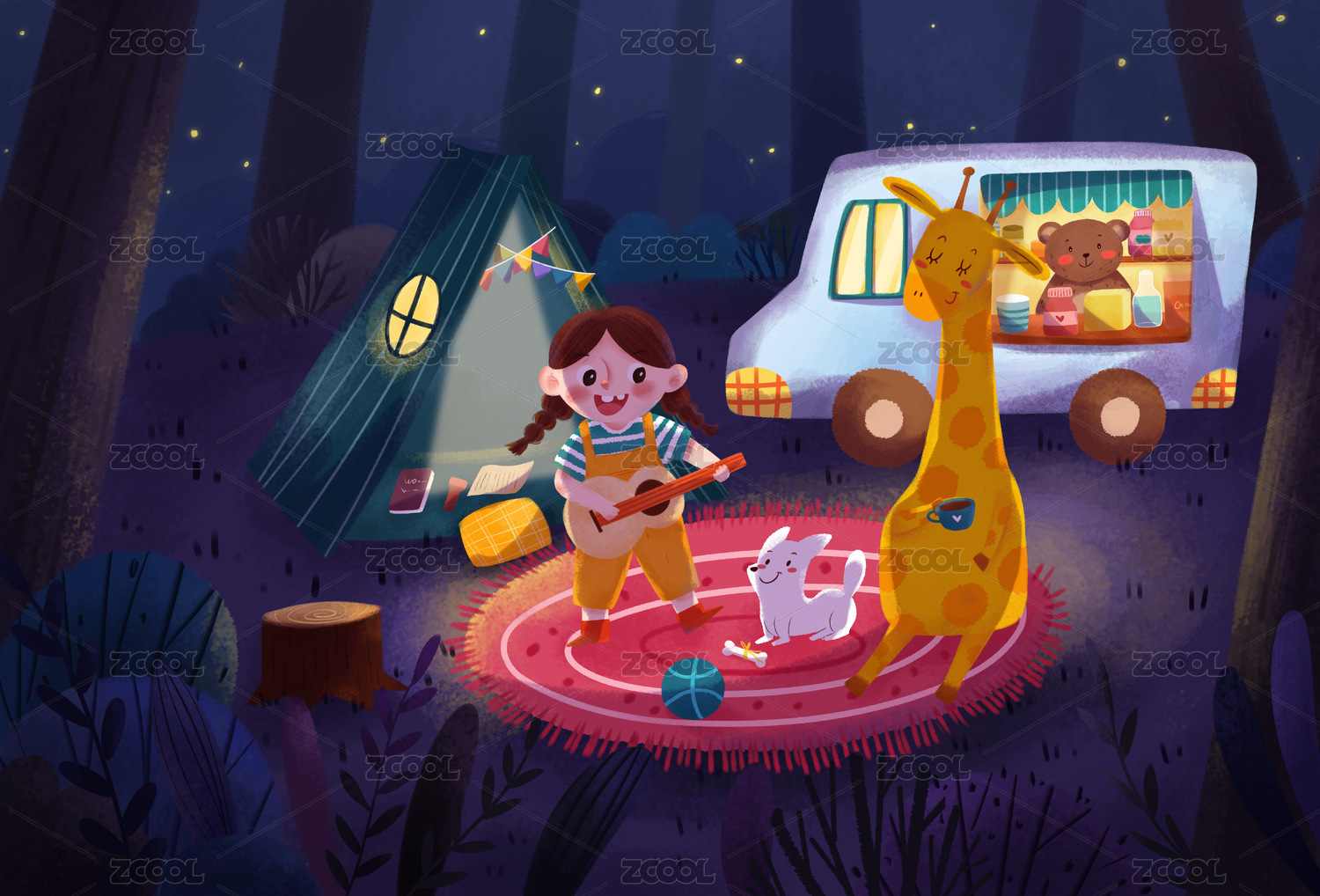 儿童插画露营