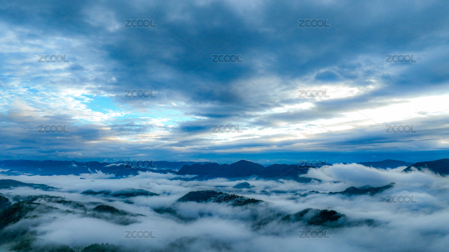 夏季早晨重庆市綦江区黑山镇黑山谷南门晨雾中的茫茫群山