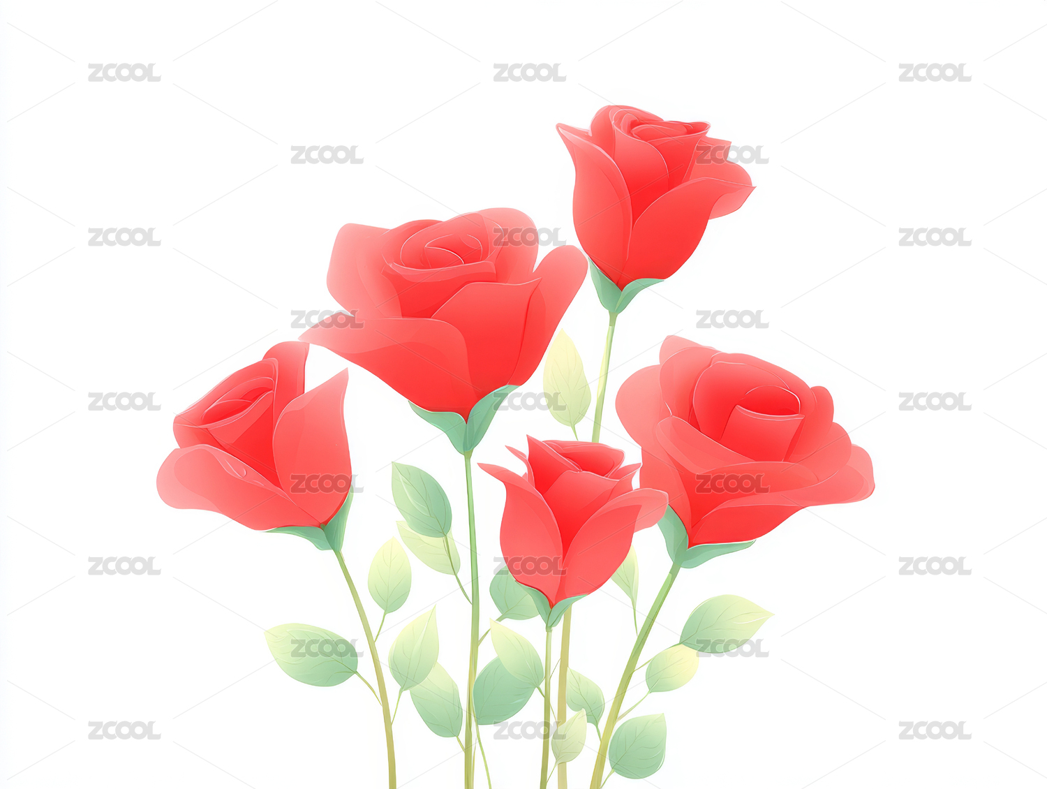 情人节节日唯美小清新玫瑰花鲜花花朵插画