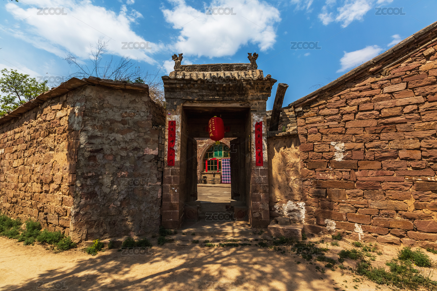中国山东省临沂市沂南县沂蒙山村石墙院落中式门楼
