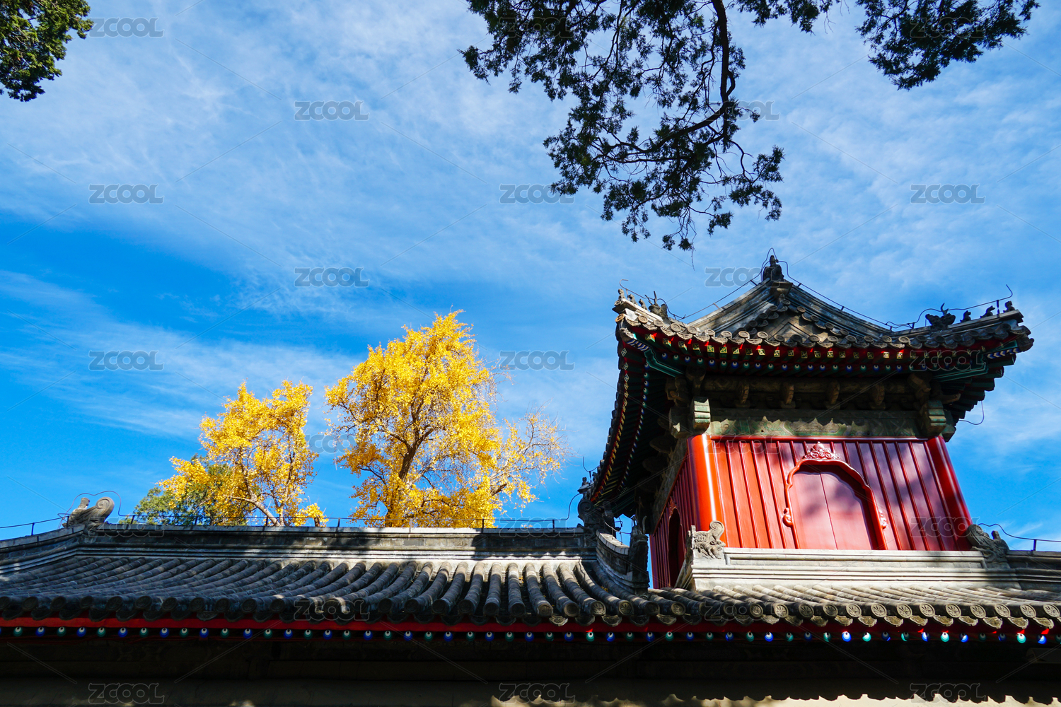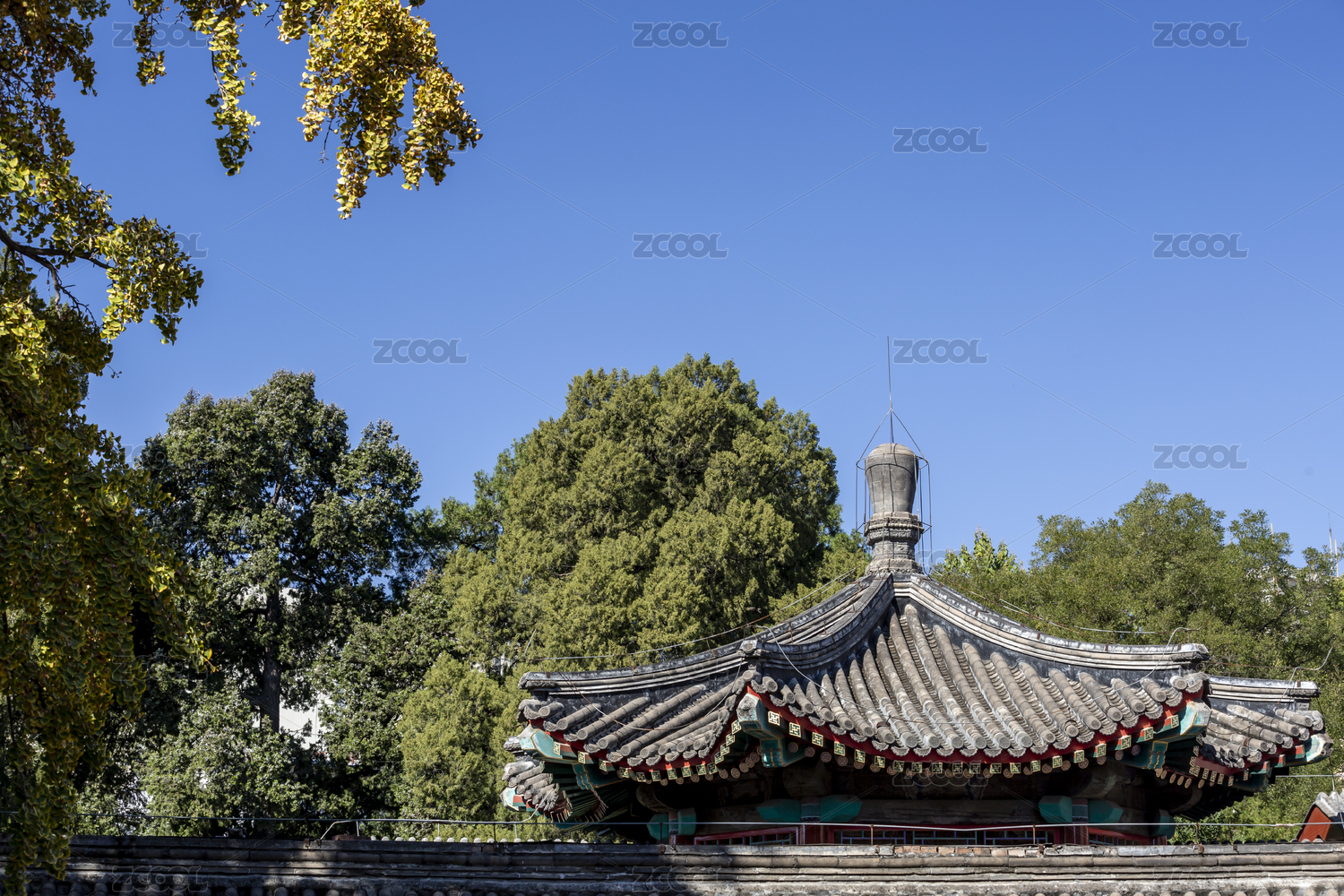 北京市海淀区万寿寺:宝顶、银杏、红墙
