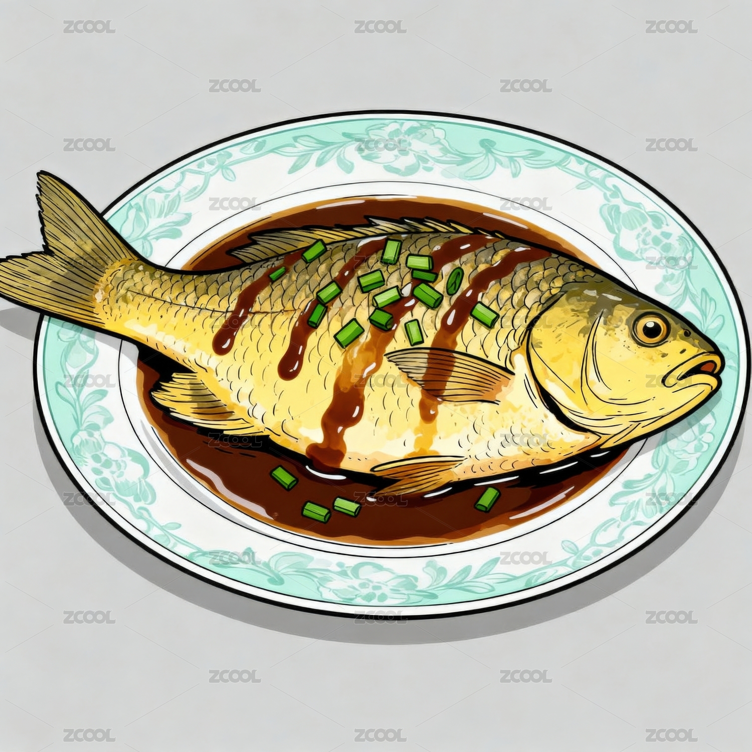 红烧鱼手绘美食插画大鲤鱼清蒸鱼鱼肉