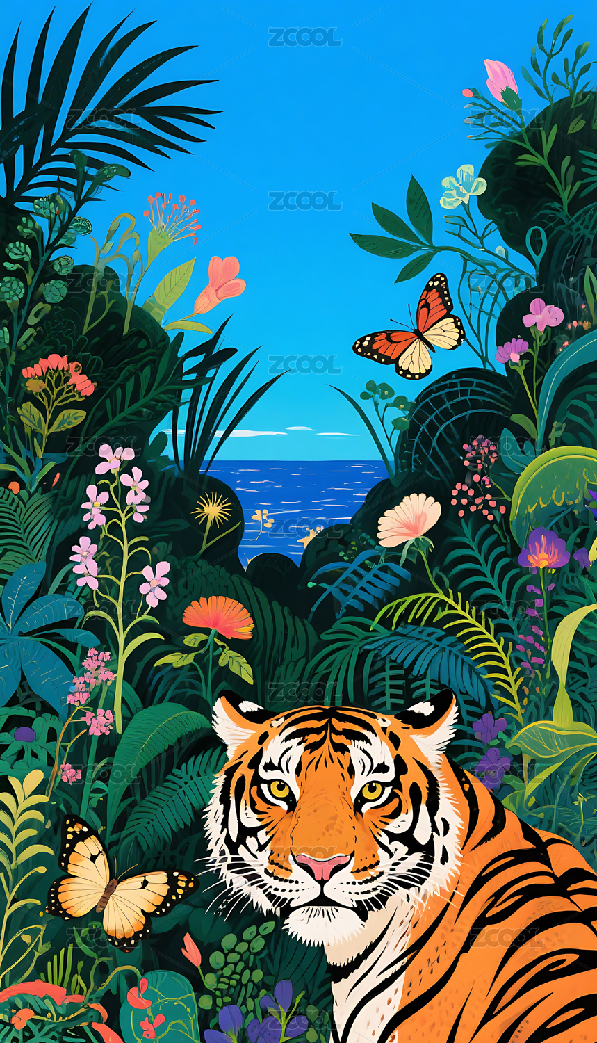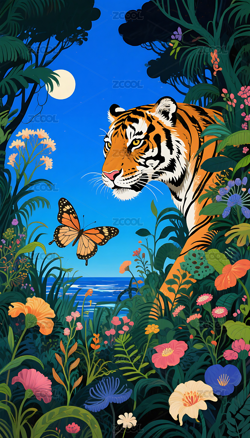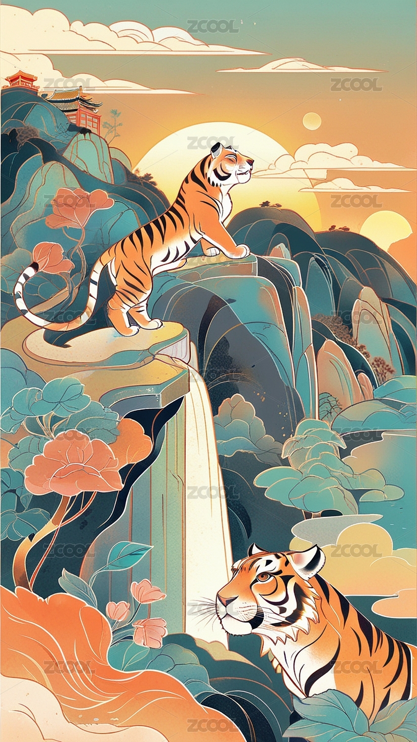 国潮,老虎,插画,动物,中国风,寅虎,AIGCFG,虎年,写意