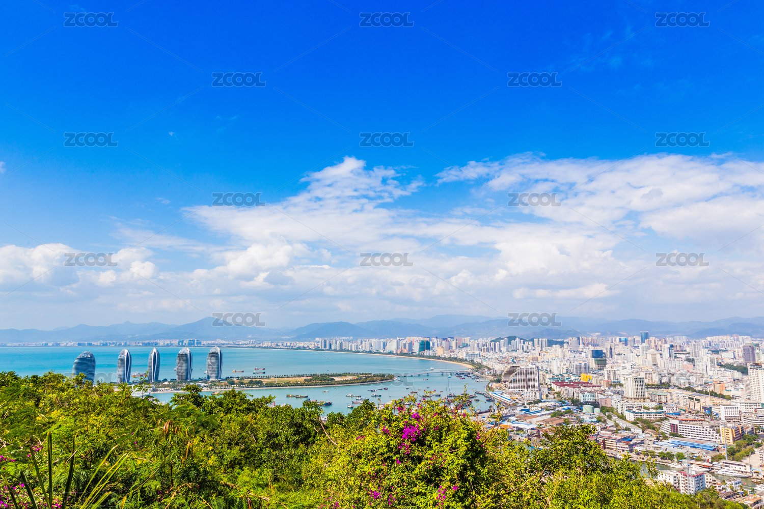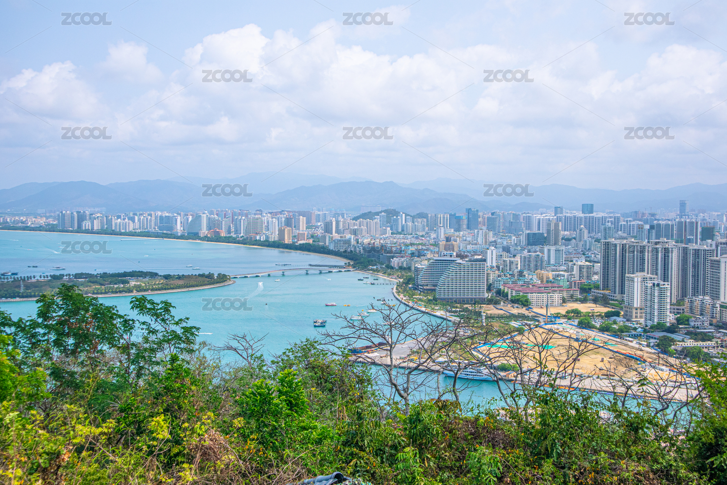 海南著名景点鹿回头山顶俯瞰海岸海湾城市