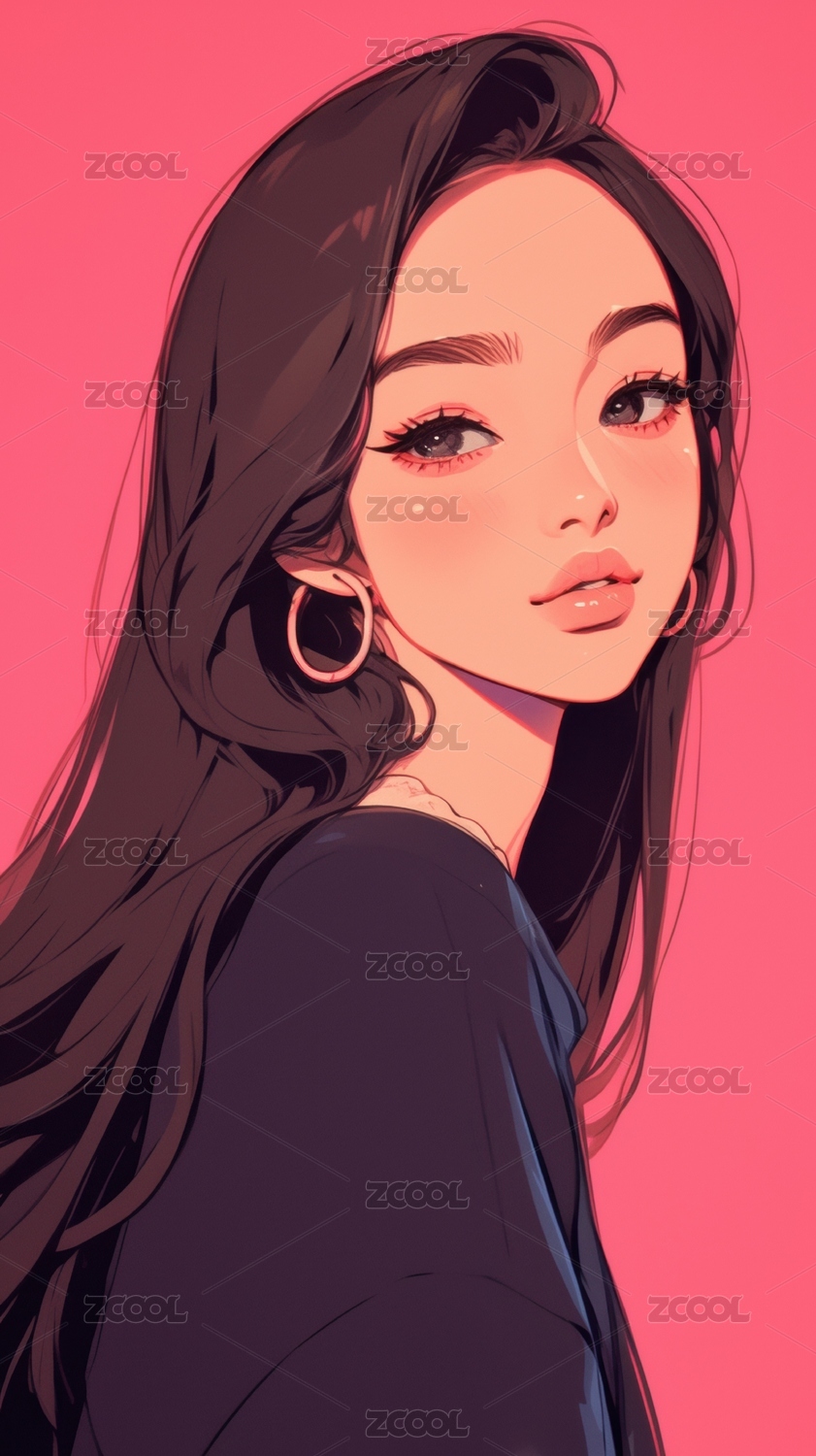 粉色背景下的长发女性插画