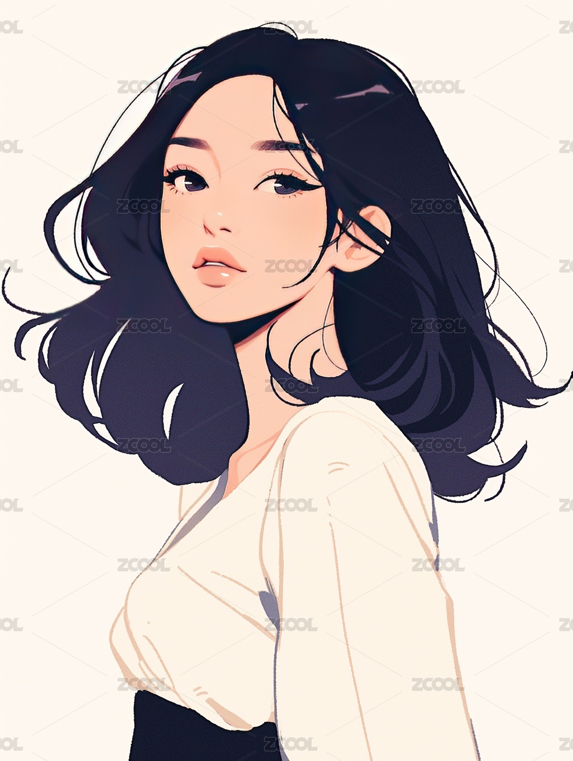 时尚美女人物卡通插画