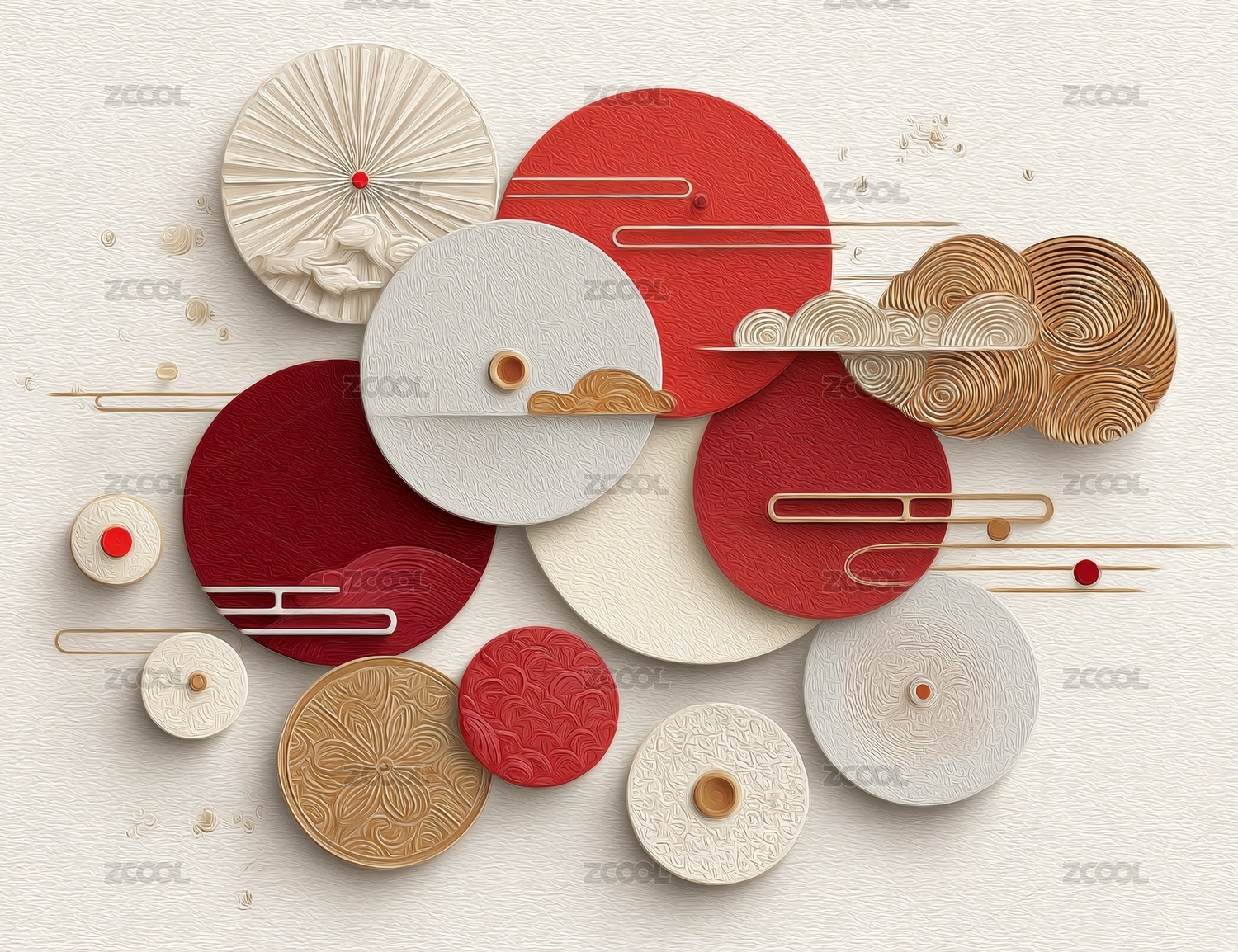 传统风格红色金色波浪装饰