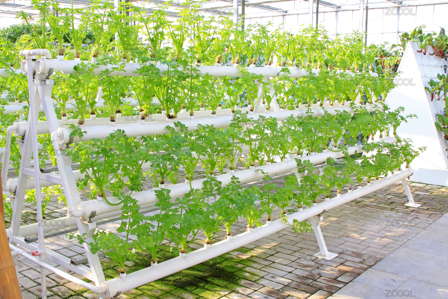 温室大棚里无土栽培的蔬菜苦菊