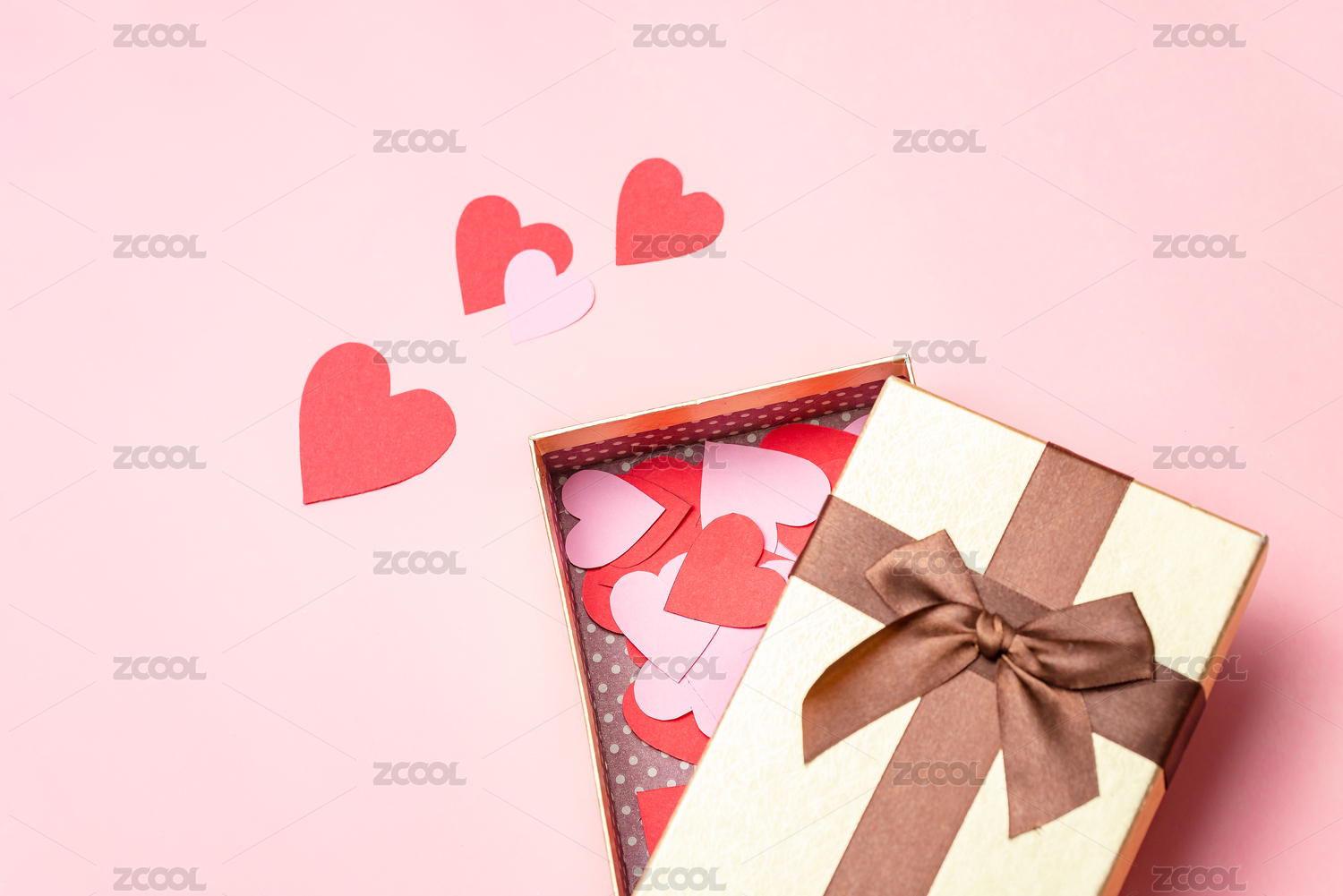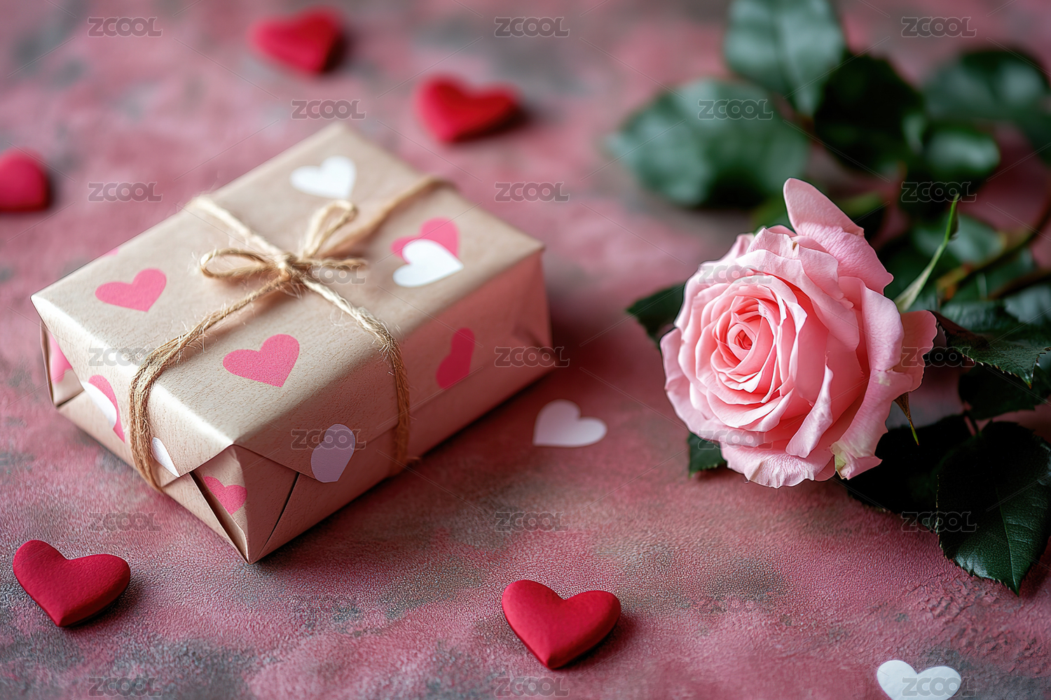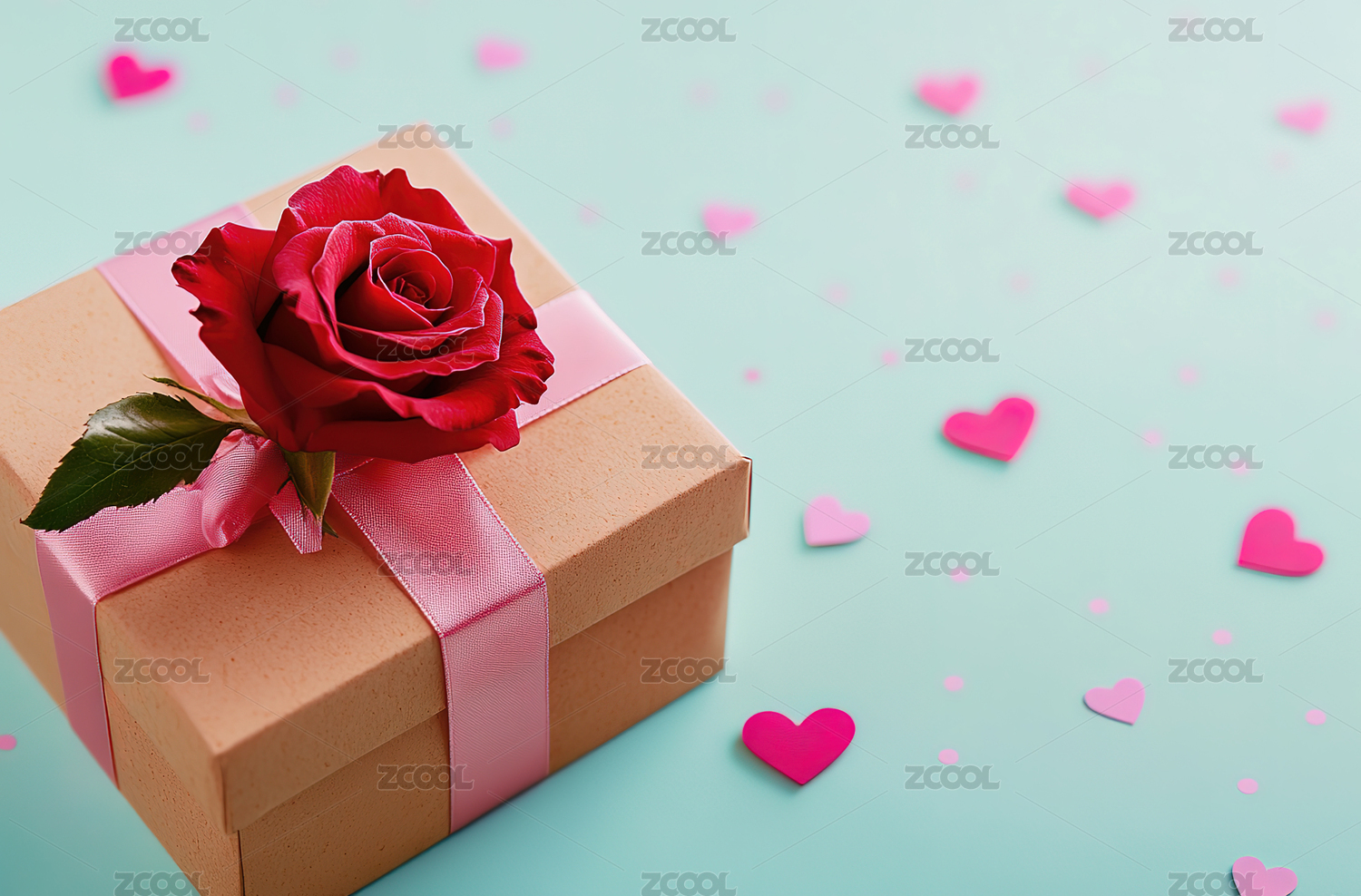 七夕节日情人节粉色玫瑰和礼物盒浪漫背景图