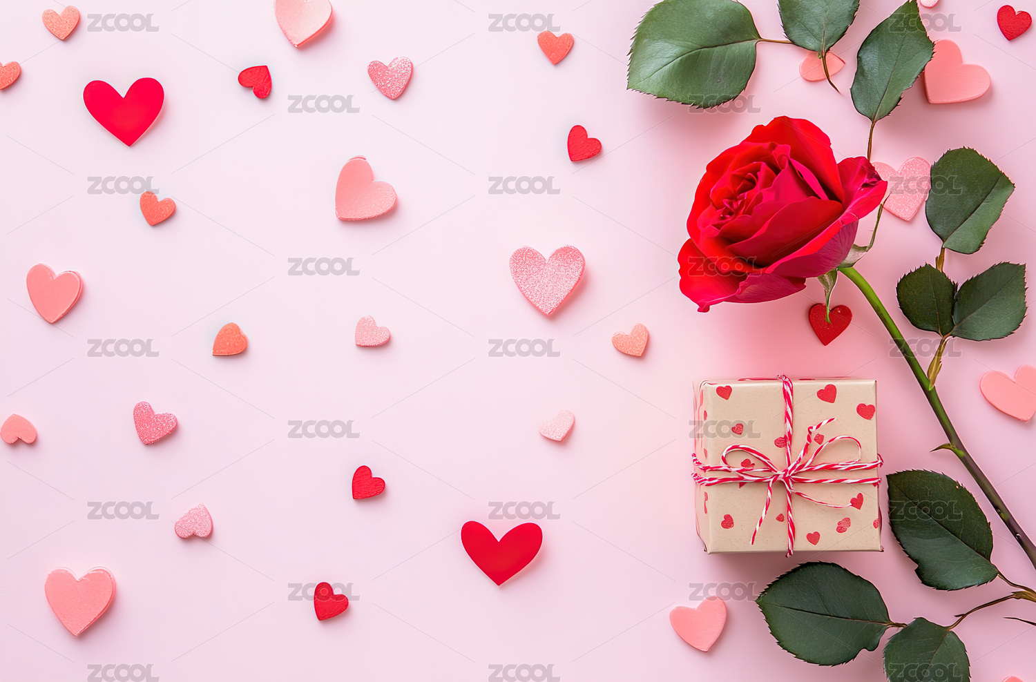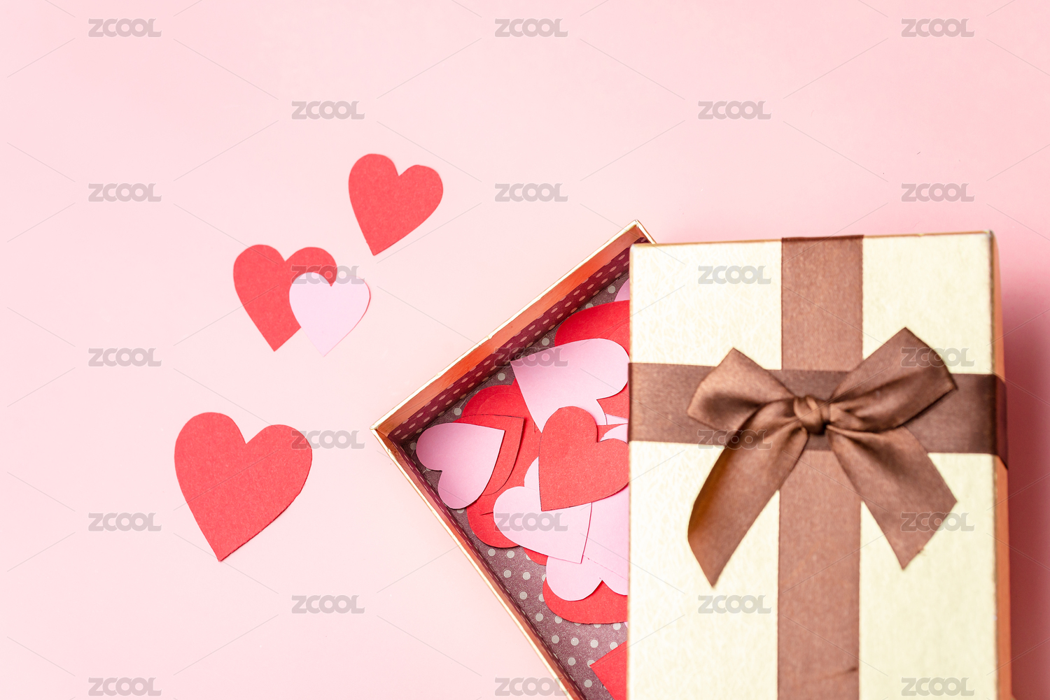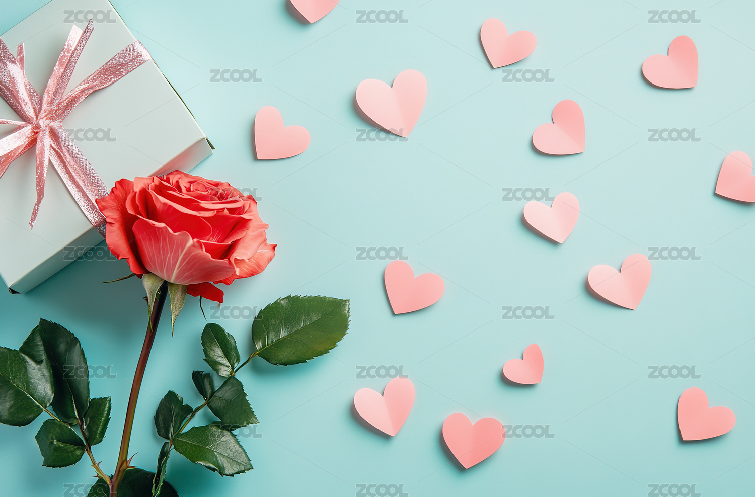 七夕节日情人节粉色玫瑰和礼物盒浪漫背景图