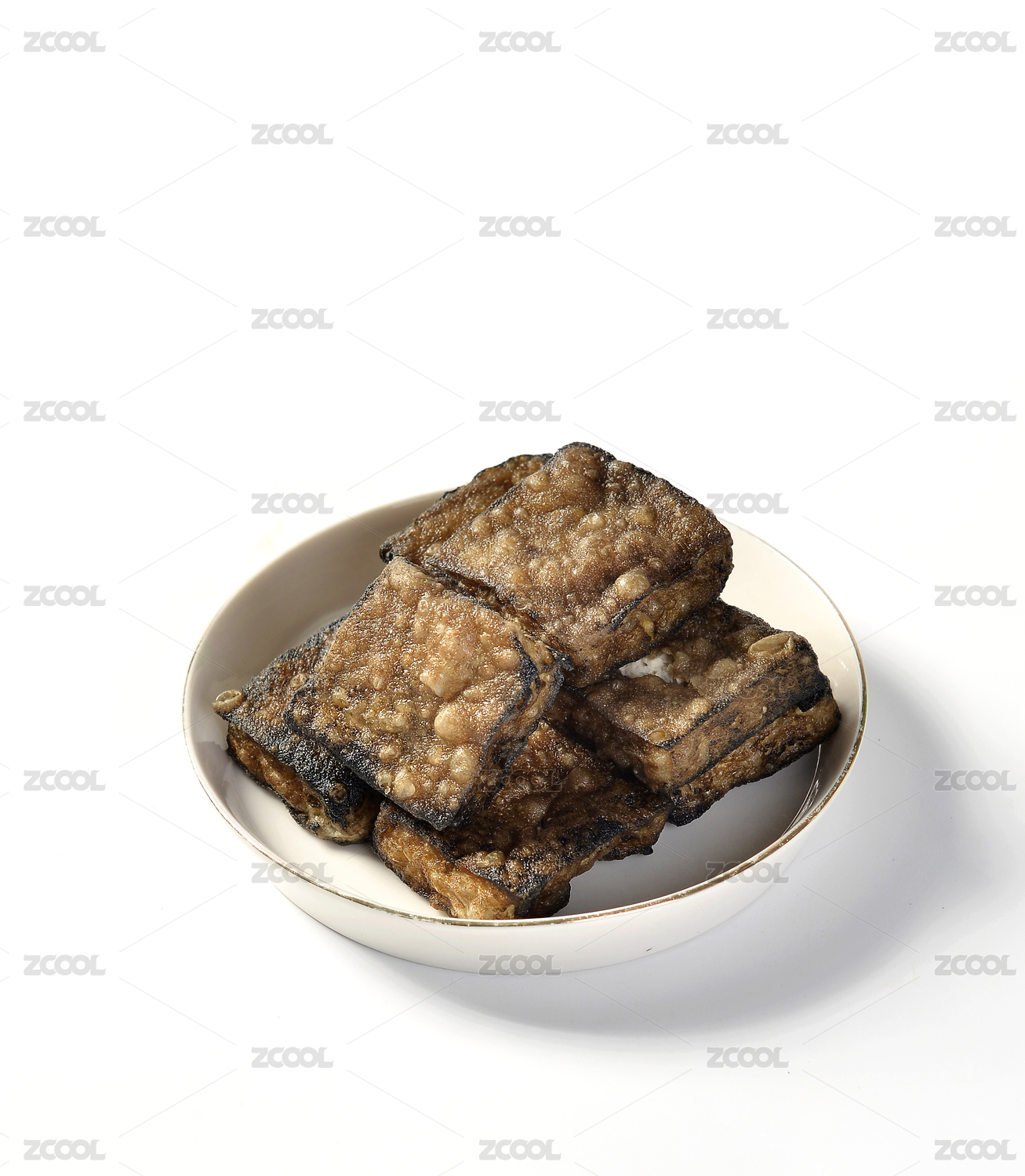 白背景一盘长沙特色小吃臭豆腐