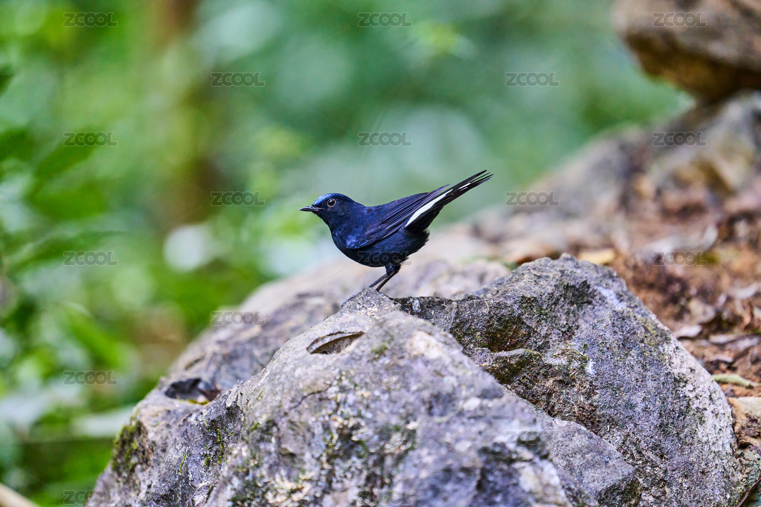 栖息于山间或溪流岩石上觅食昆虫的紫啸鸫鸟