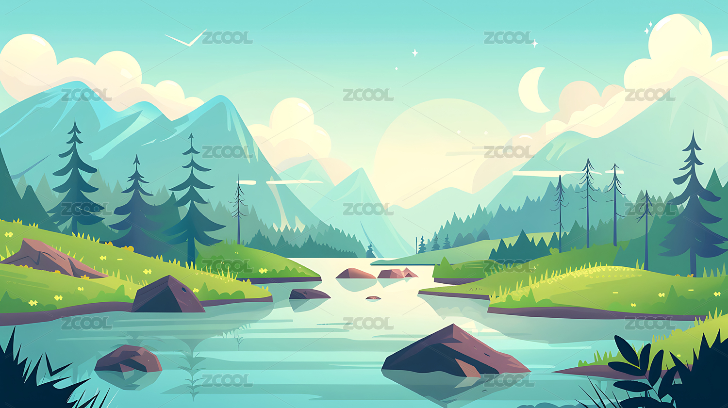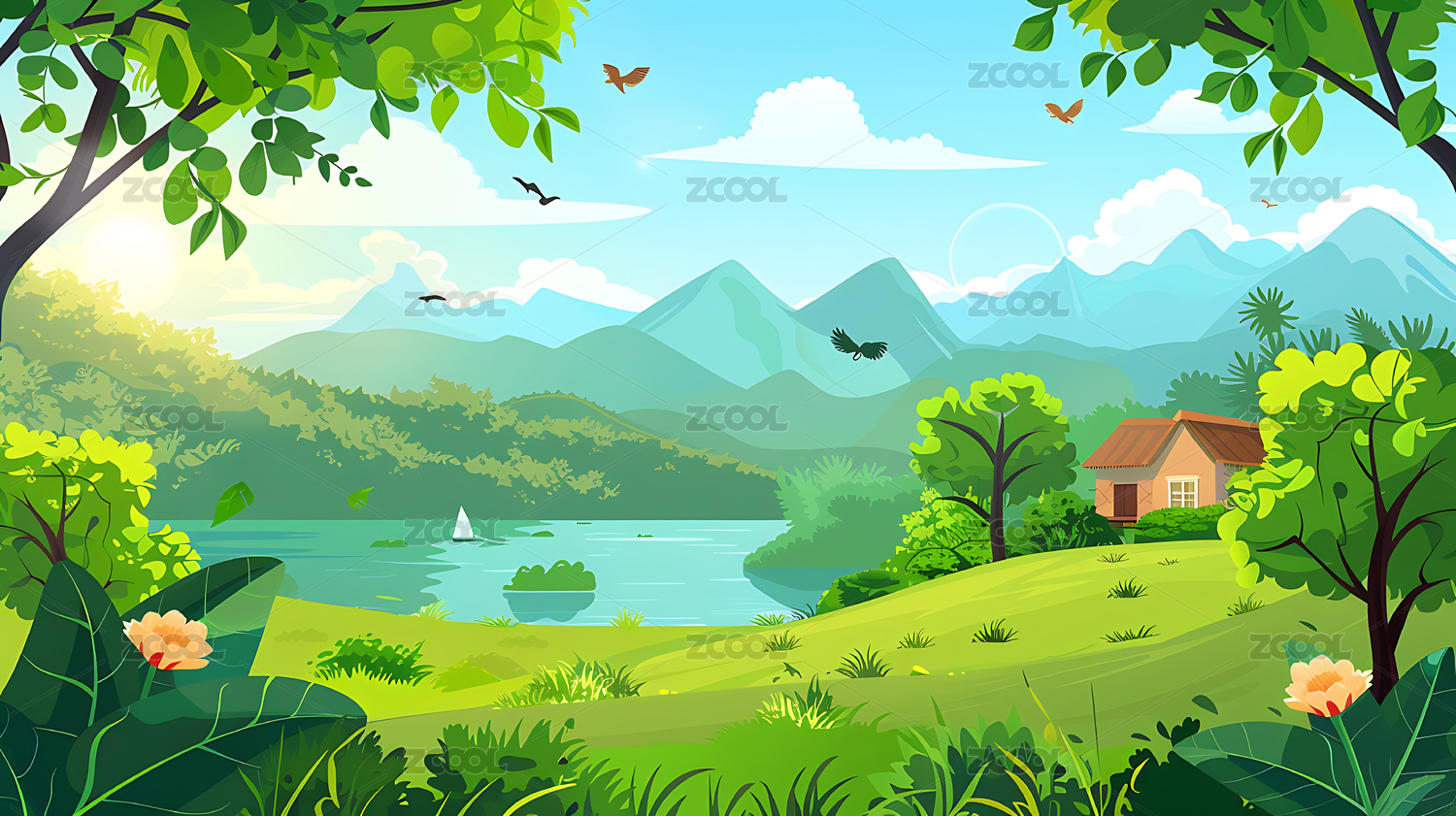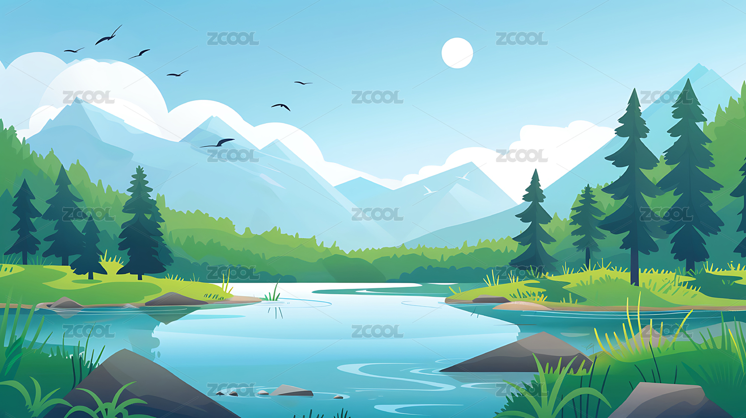 田野,自然,旅游,插画,背景,风景,户外,出行,农场,河流