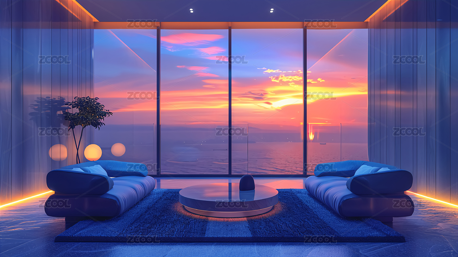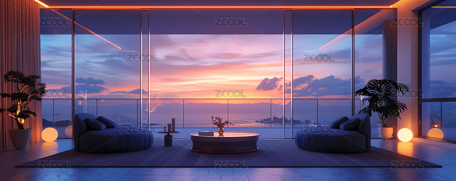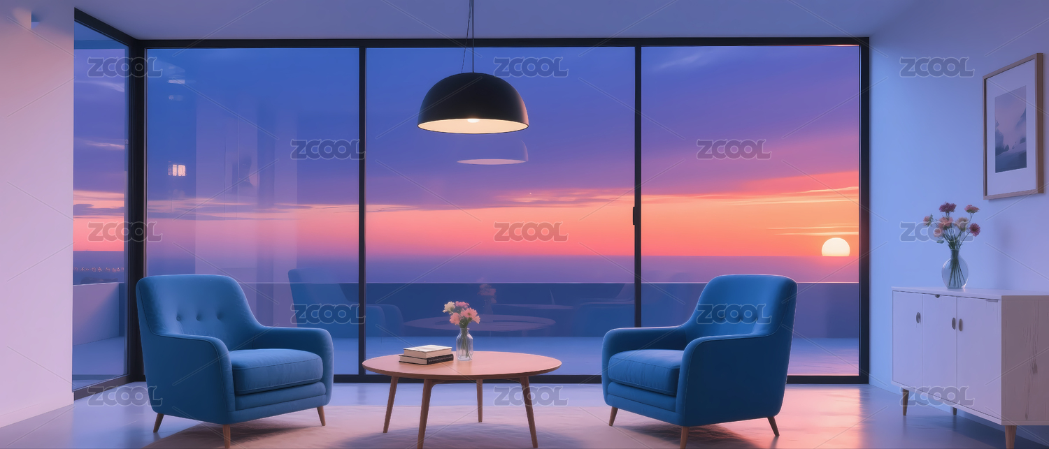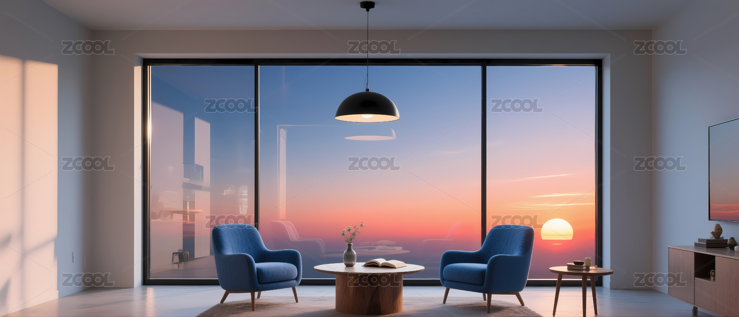 日落景色舒适客厅家居