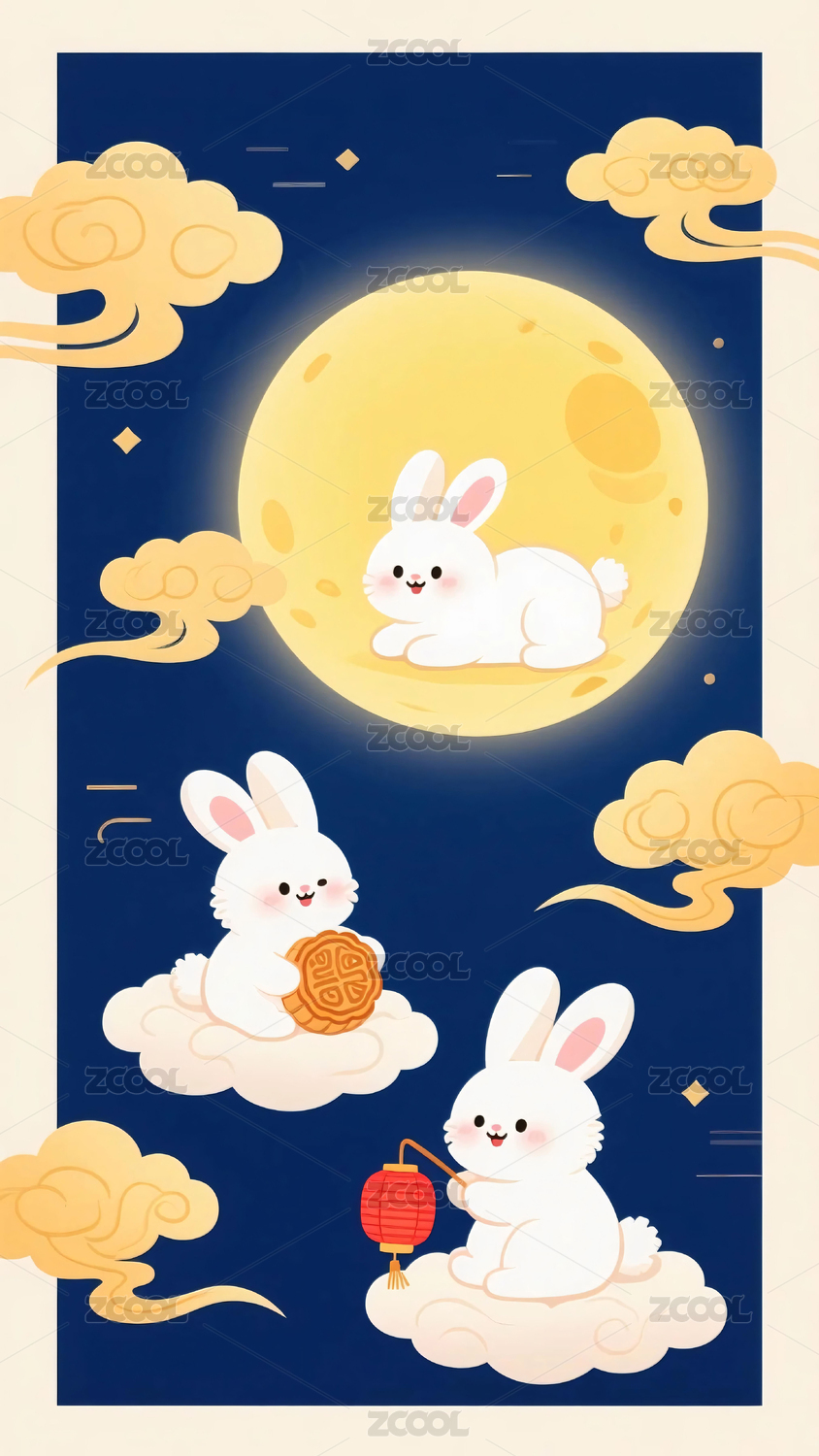 中秋节海报插画几只兔子玉兔在月下玩耍庆祝