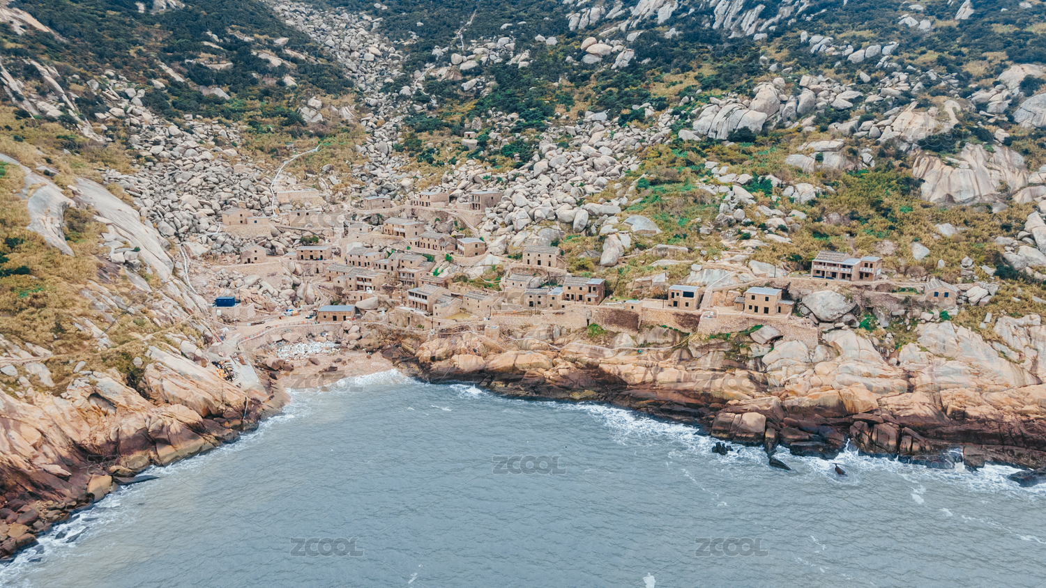蓝天下的中国浙江东福山岛大树湾石头无人村