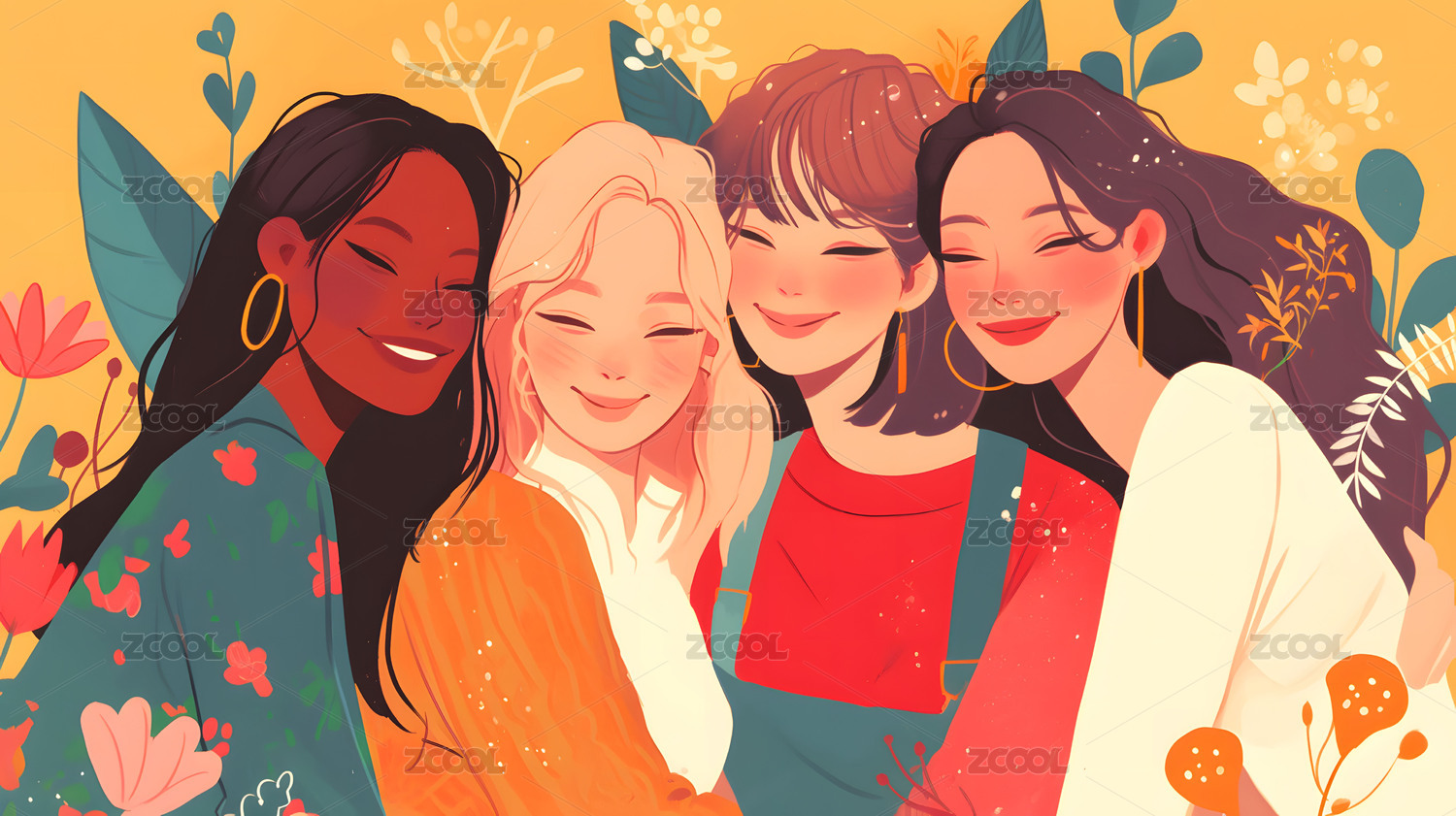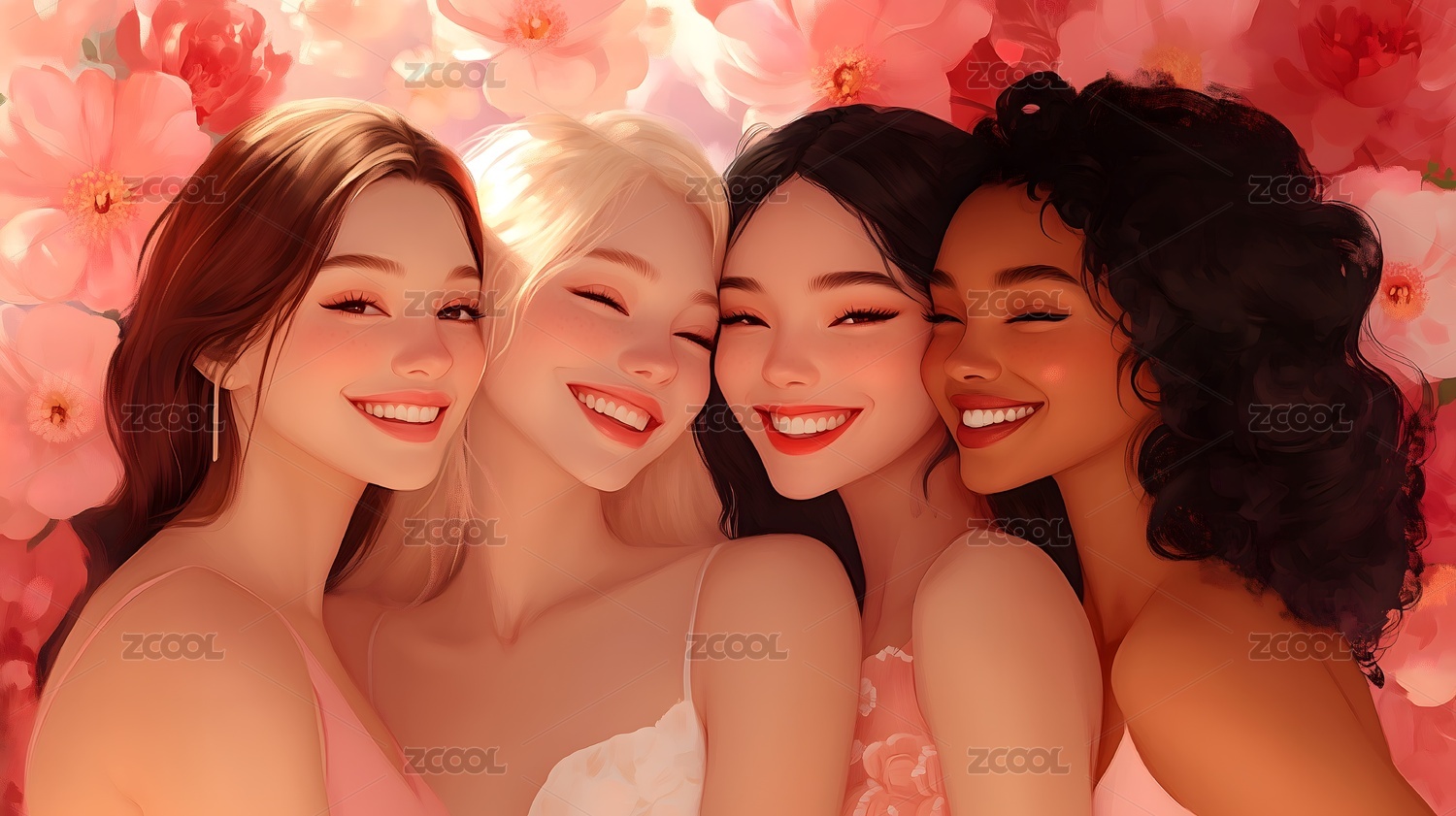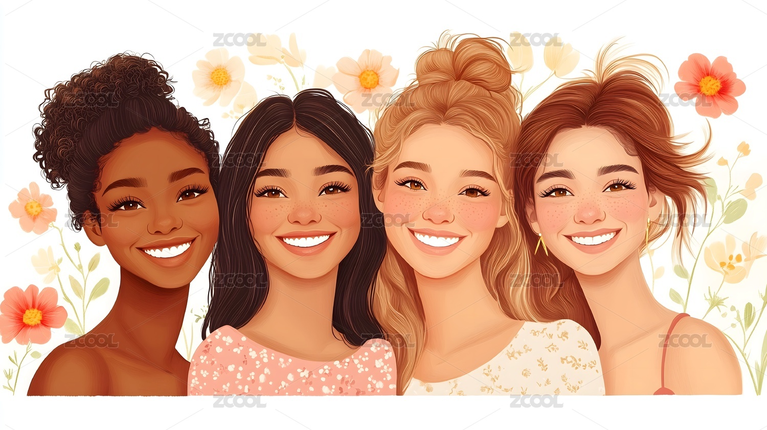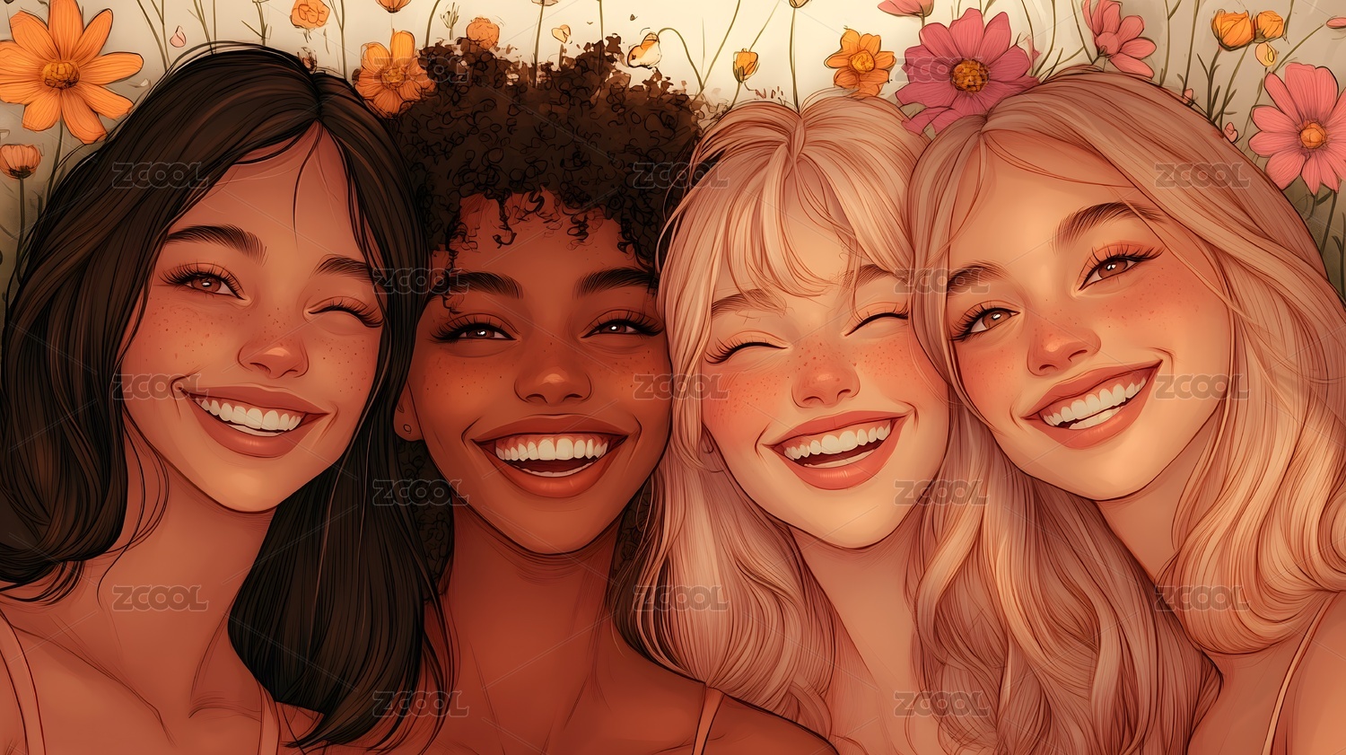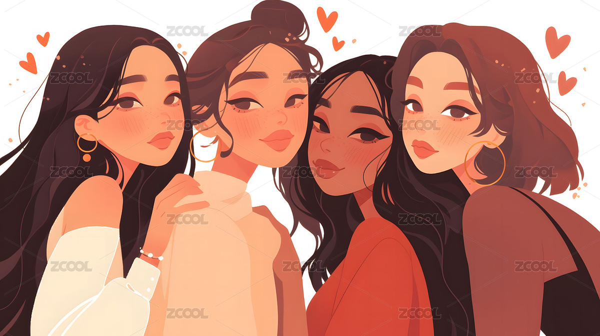 绽放的友谊:四个女孩的肖像