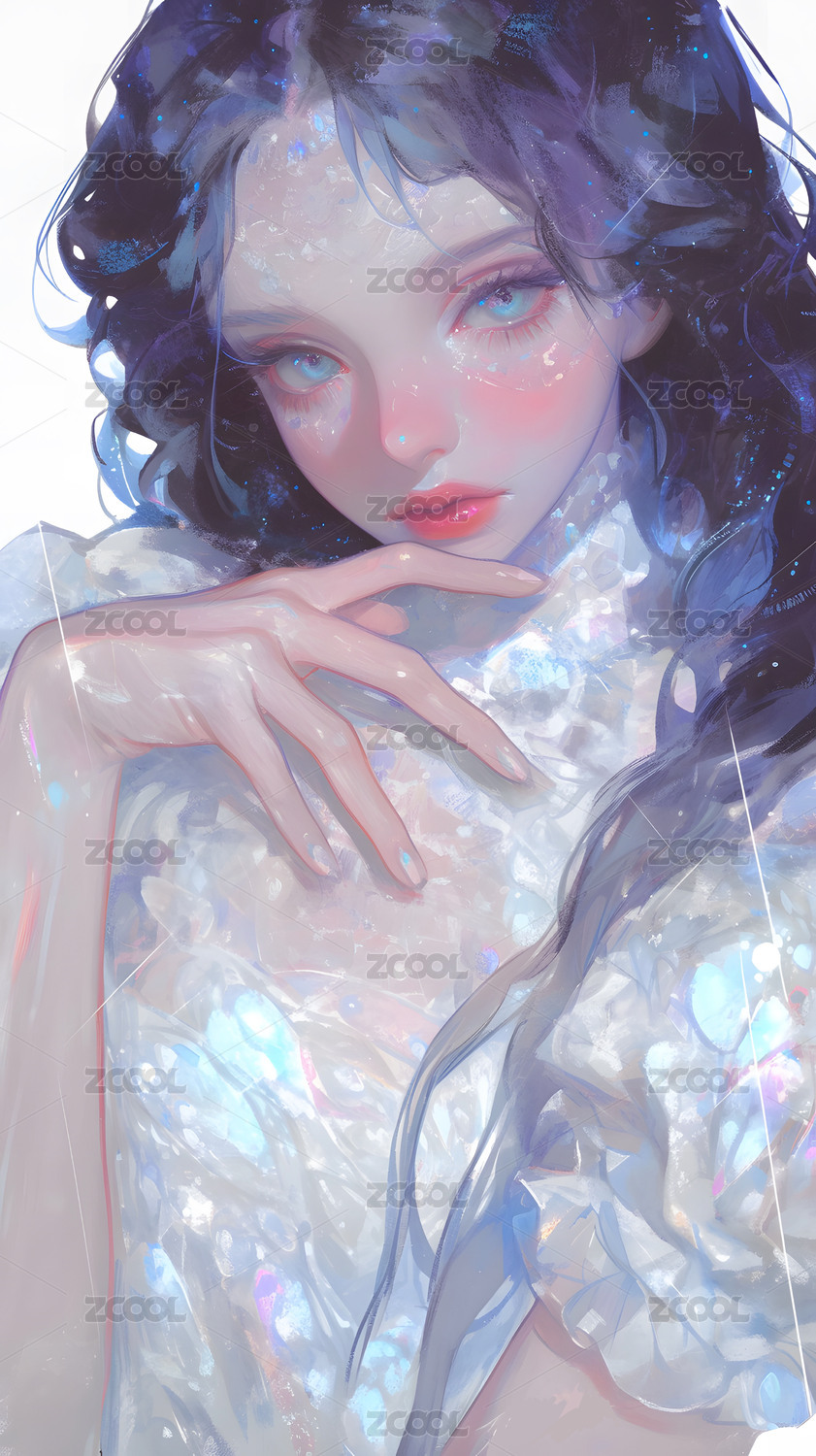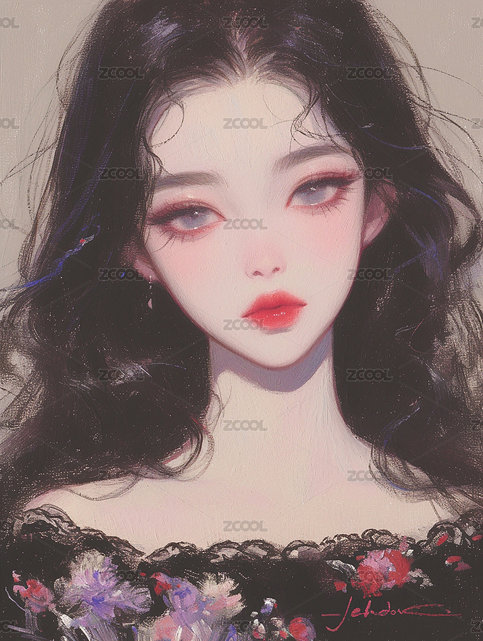 美女,女孩,暗黑,对视,卷发,蕾丝