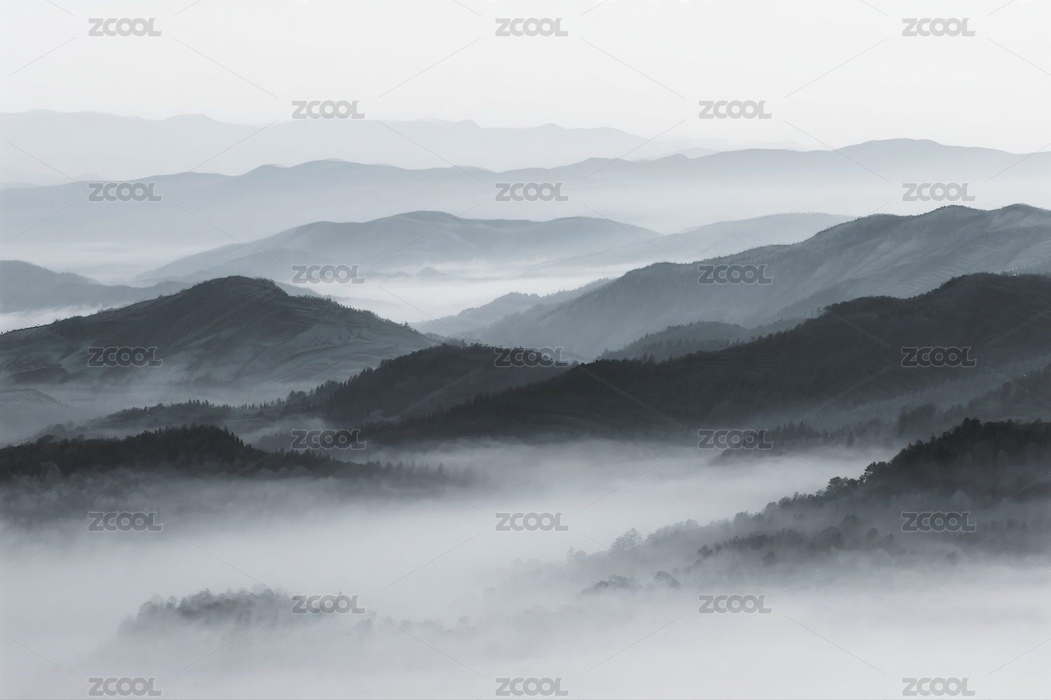 雾霭山峦叠嶂图