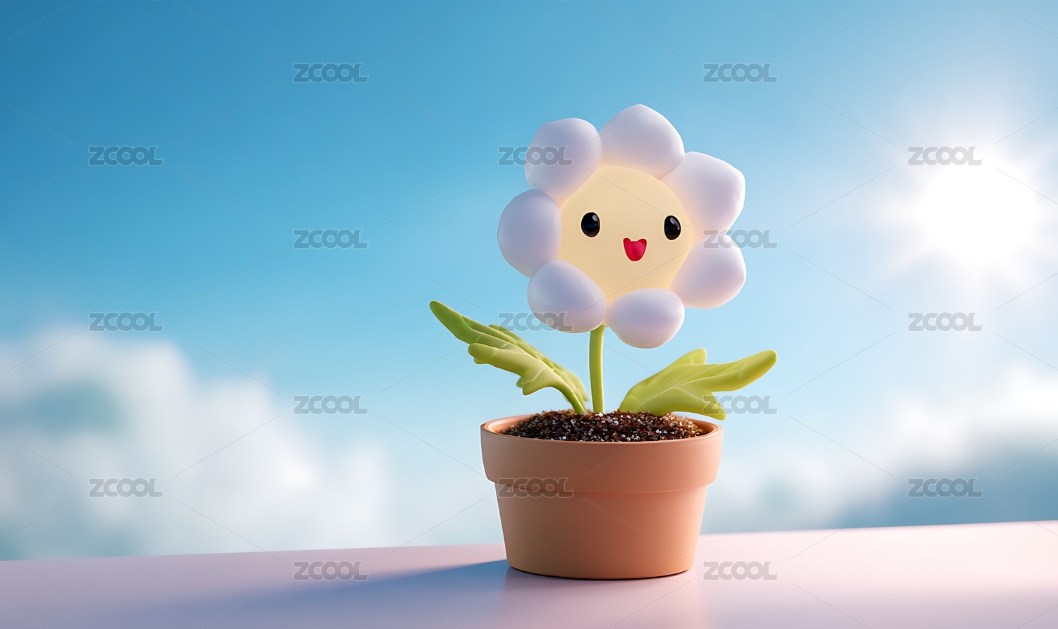 花盆毛毡充气拟人笑脸花朵免抠白底透明元素