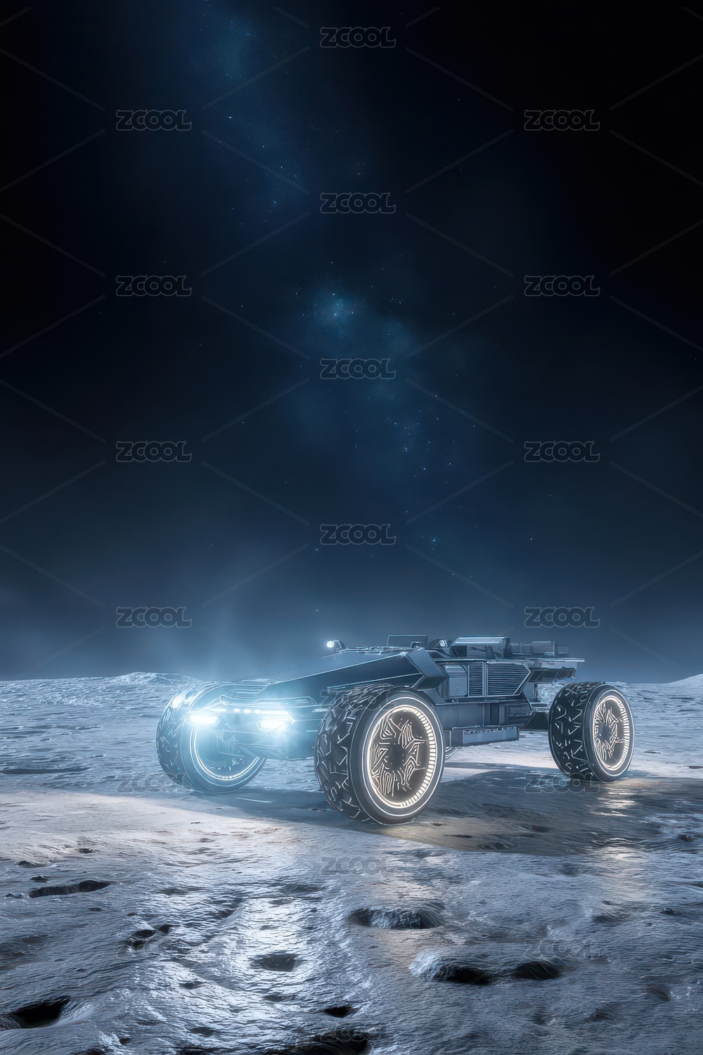 3D,夜晚,星空,科幻,未来,科技,飞行汽车,沙漠,月球,戈壁