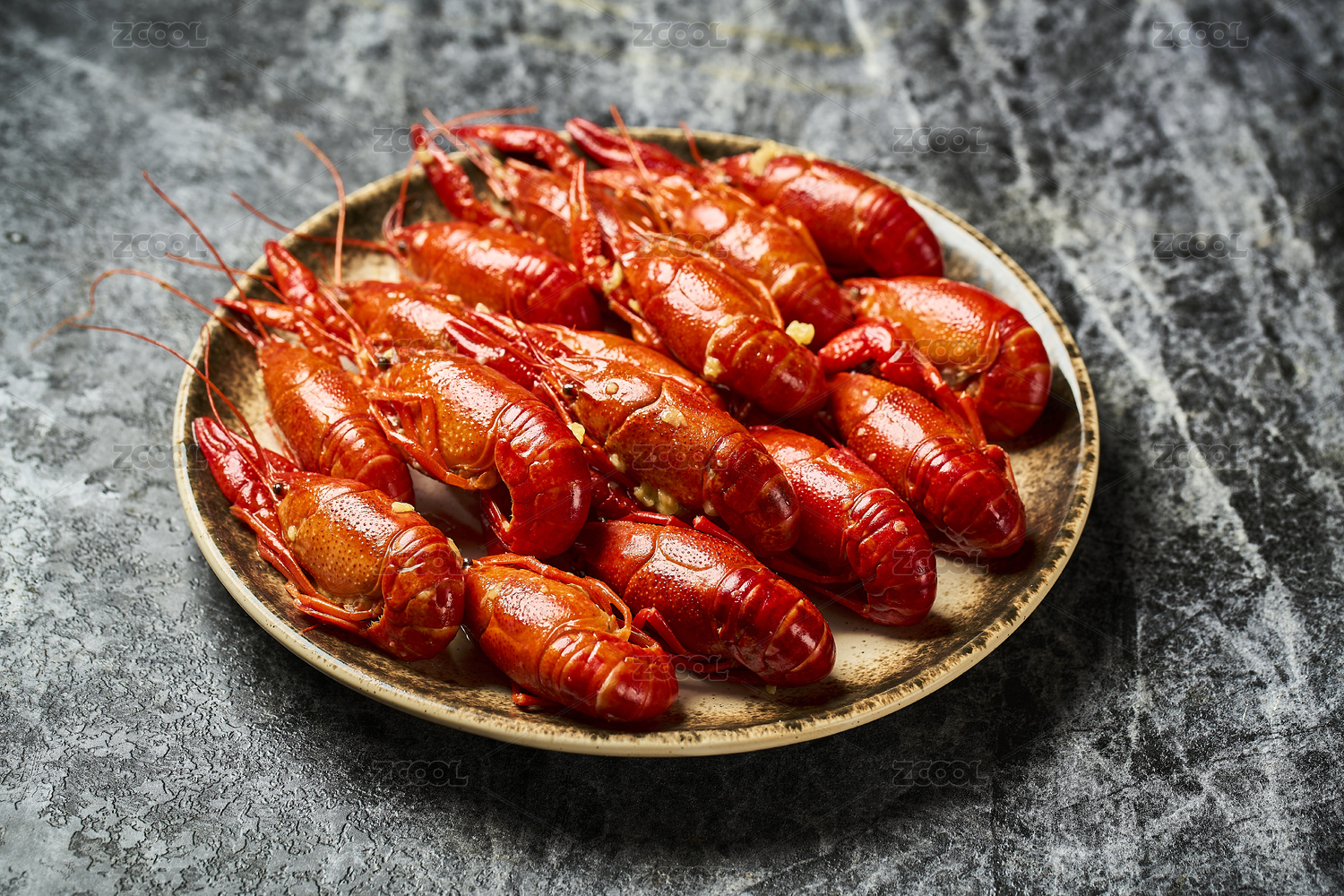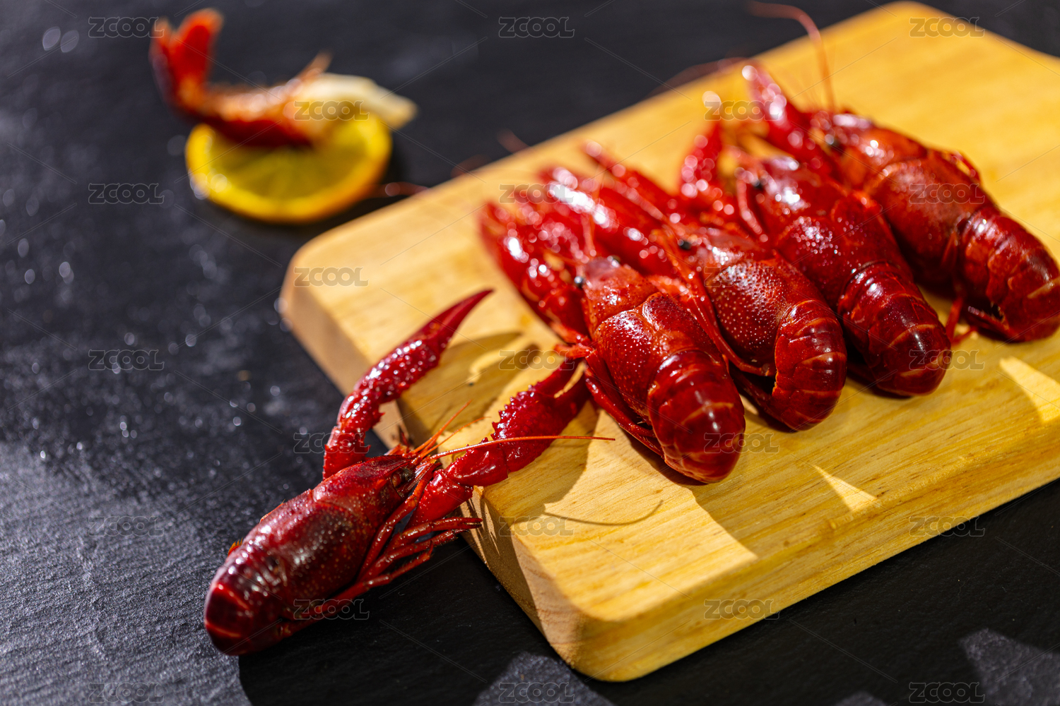 深色背景下的小龙虾