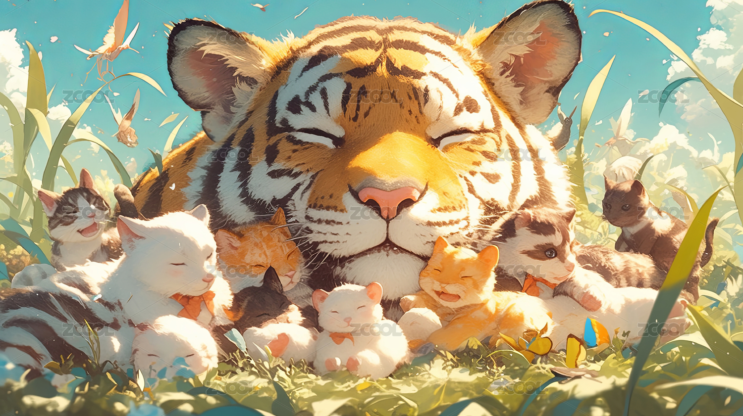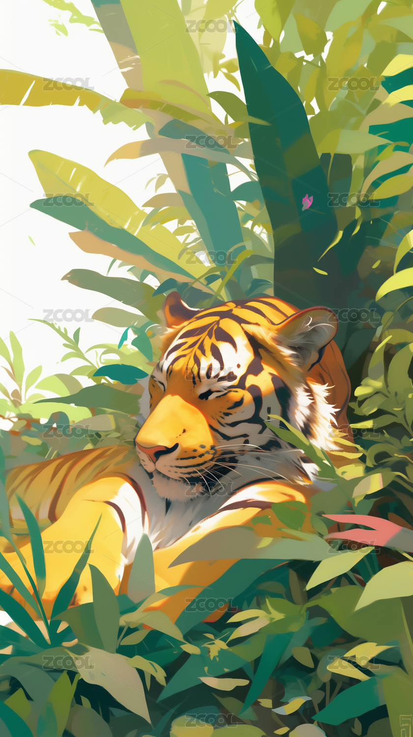 绿色,丛林,老虎,插画,树林,猛兽,动物,野兽,小老虎,濒危