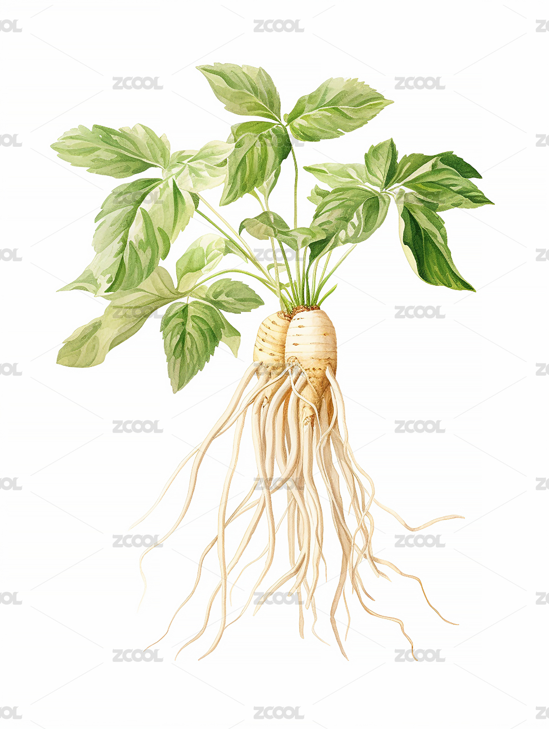 绿叶,人参,山参,绘画,涂鸦,手绘,扁平,叶,绿色,黄色