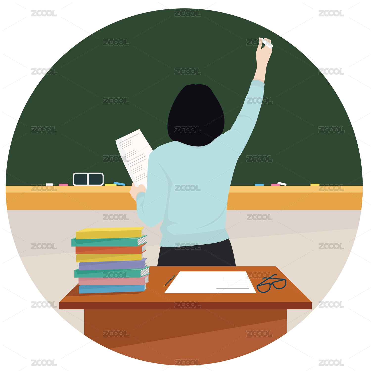 年轻的教师正在黑板上写数学题 课堂上讲课的老师插画