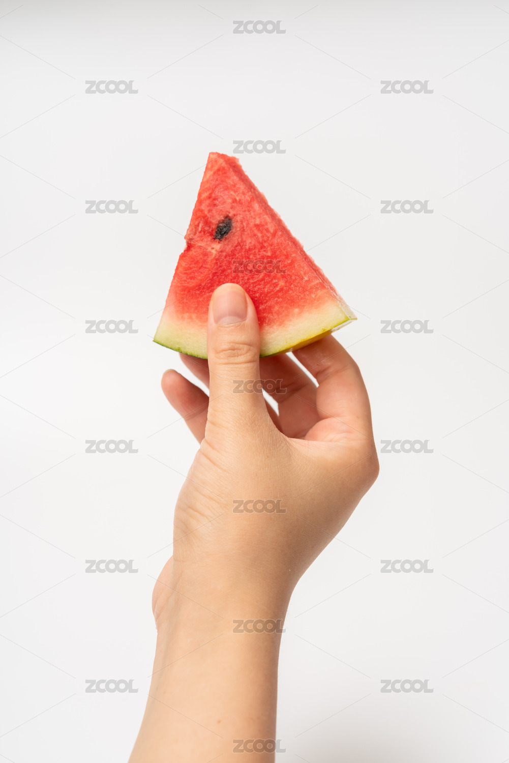 特写女性手托举着半片西瓜