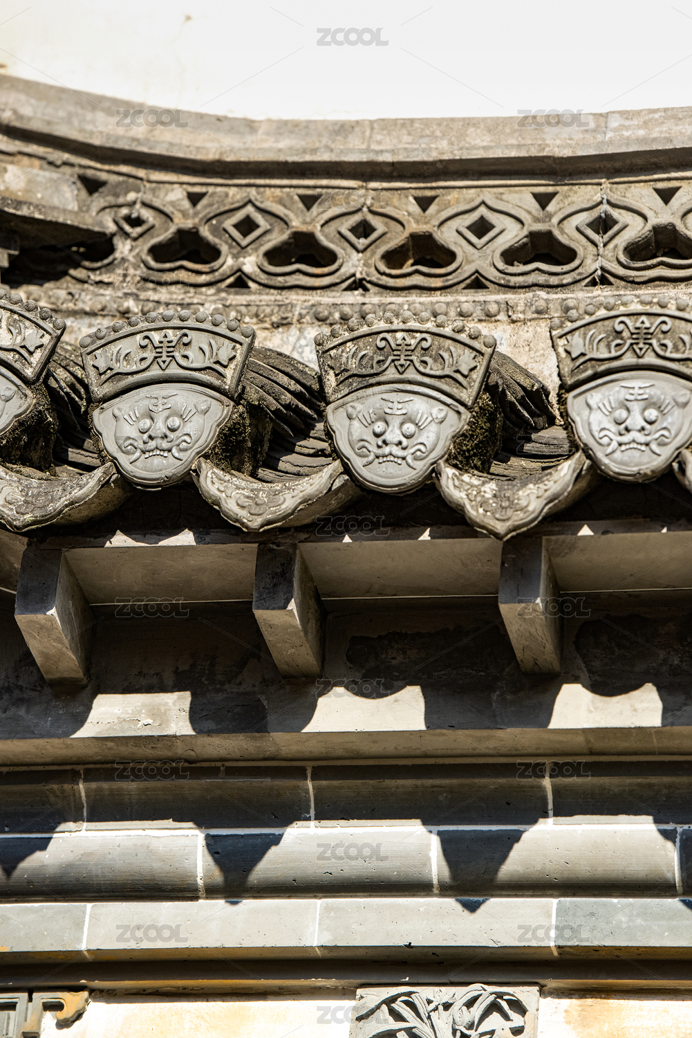 陈家大院(陈家桅杆)屋顶屋脊浮雕装饰细节