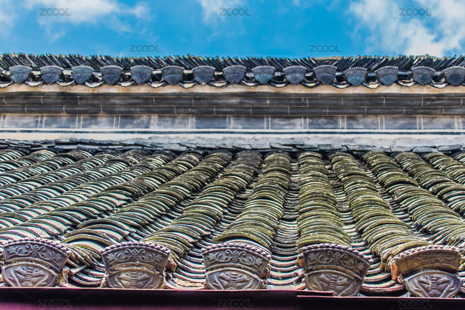 四川成都洛带古镇民居天井青瓦屋顶及防火墙
