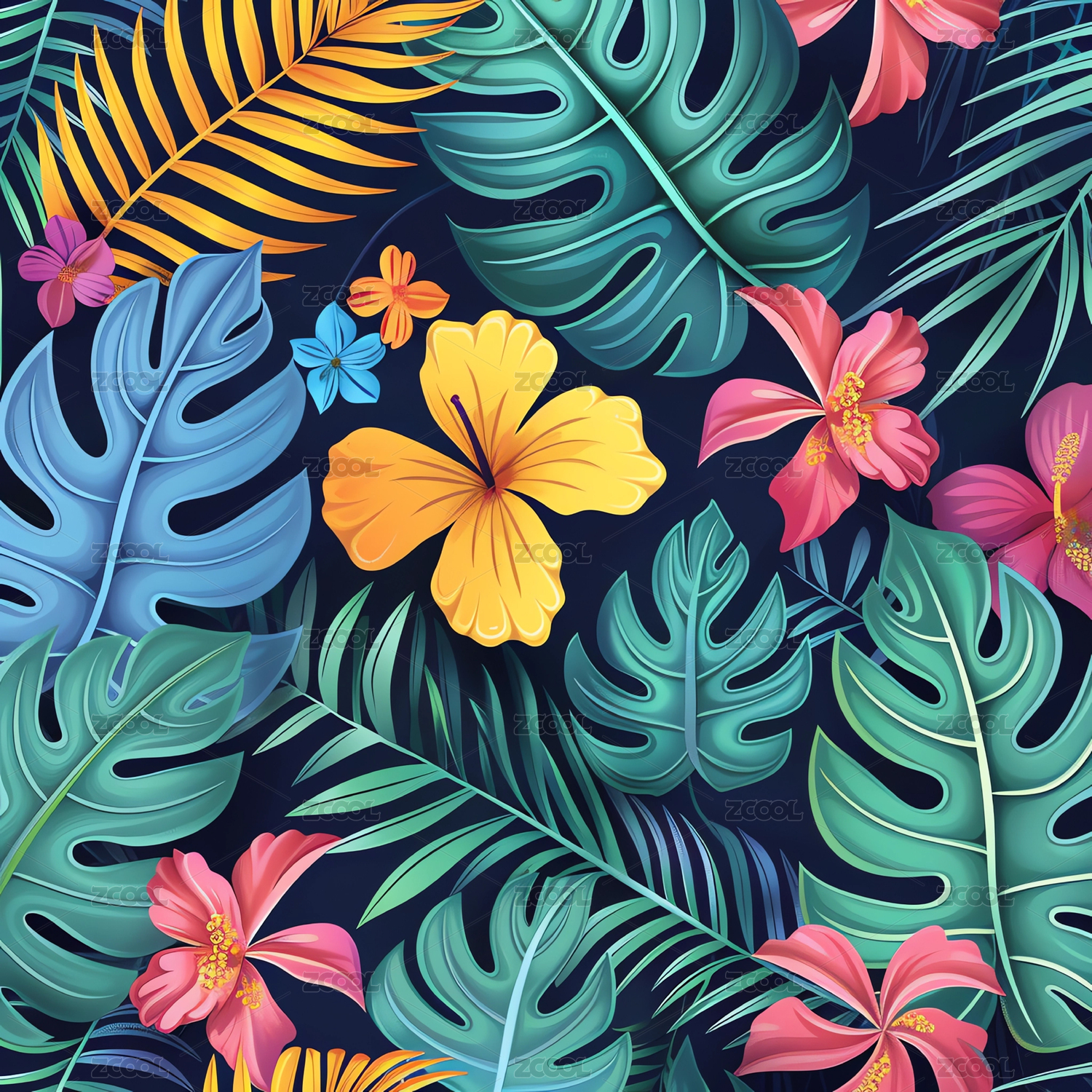 热带树叶与花卉