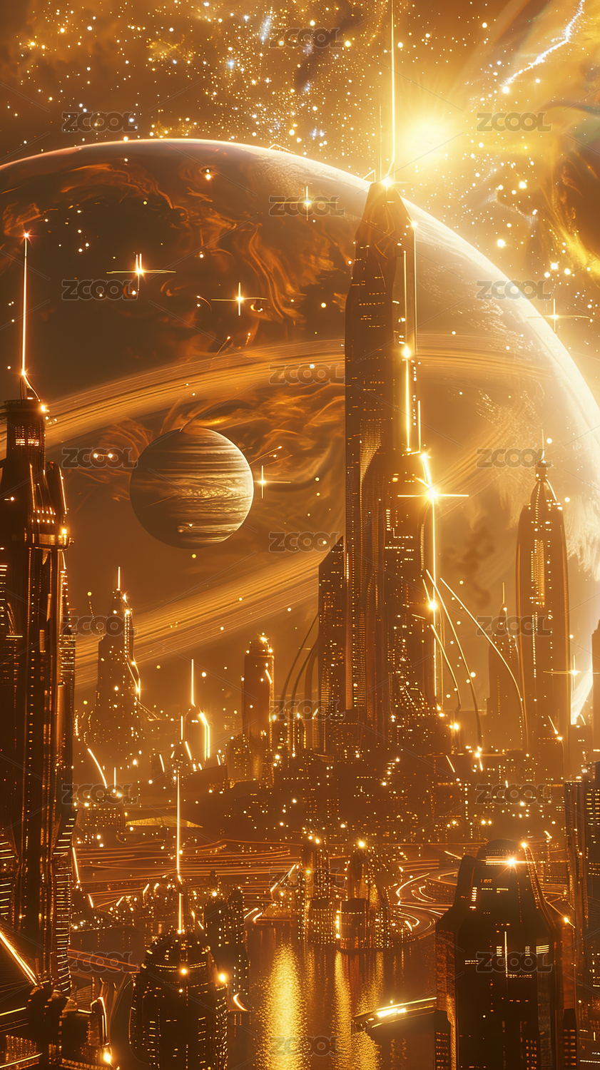 未来高科技宇宙飞船穿越星际之门的科幻插画