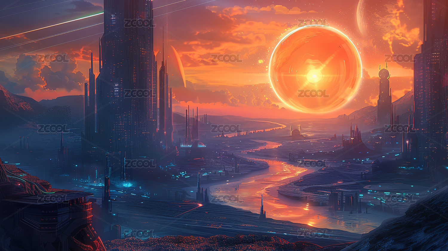 城市,天空,建筑,摩天大楼,互联网,人工智能,未来,商务,概念