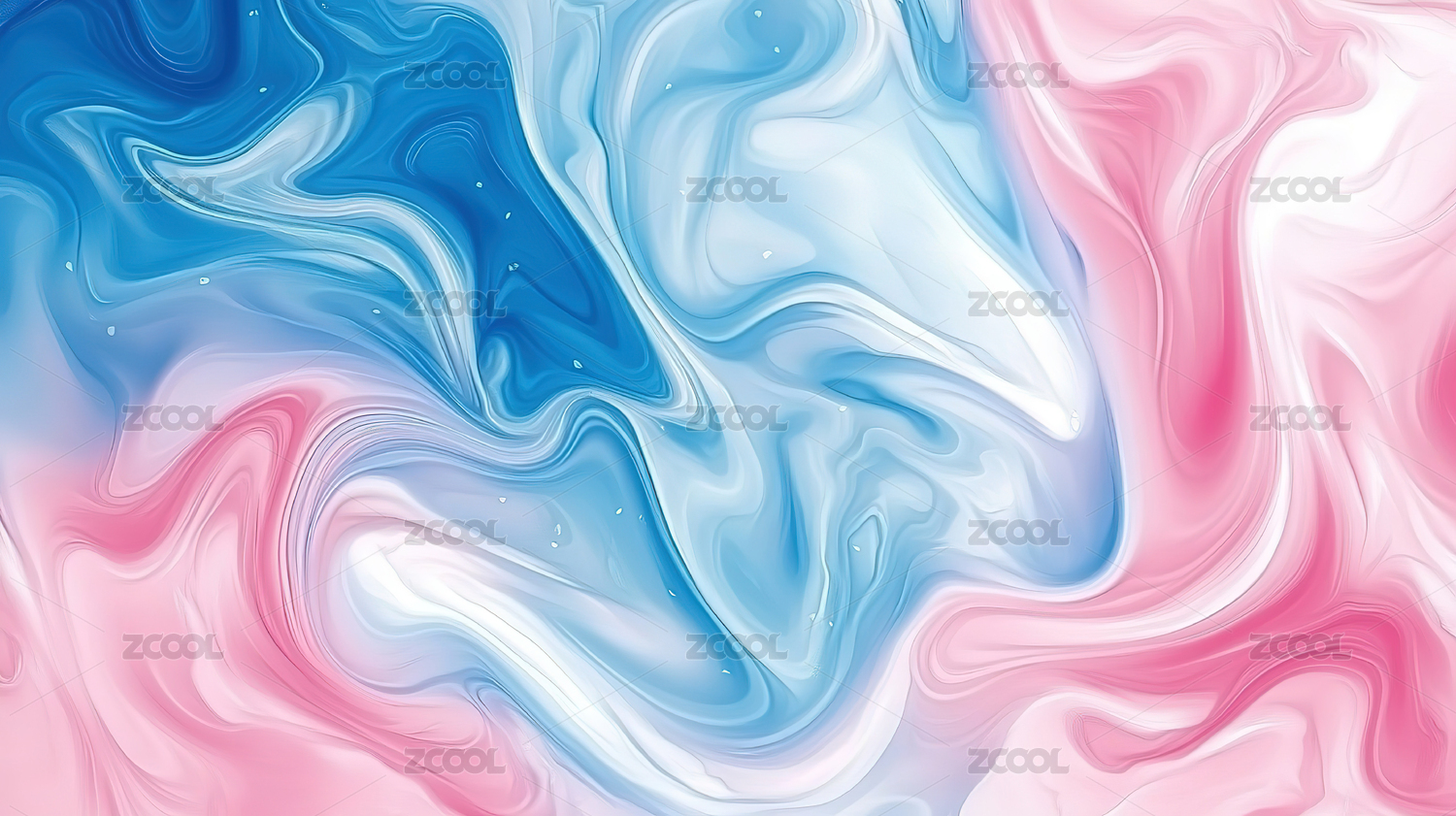 粉色与蓝色流体相互交融呈现抽象美感
