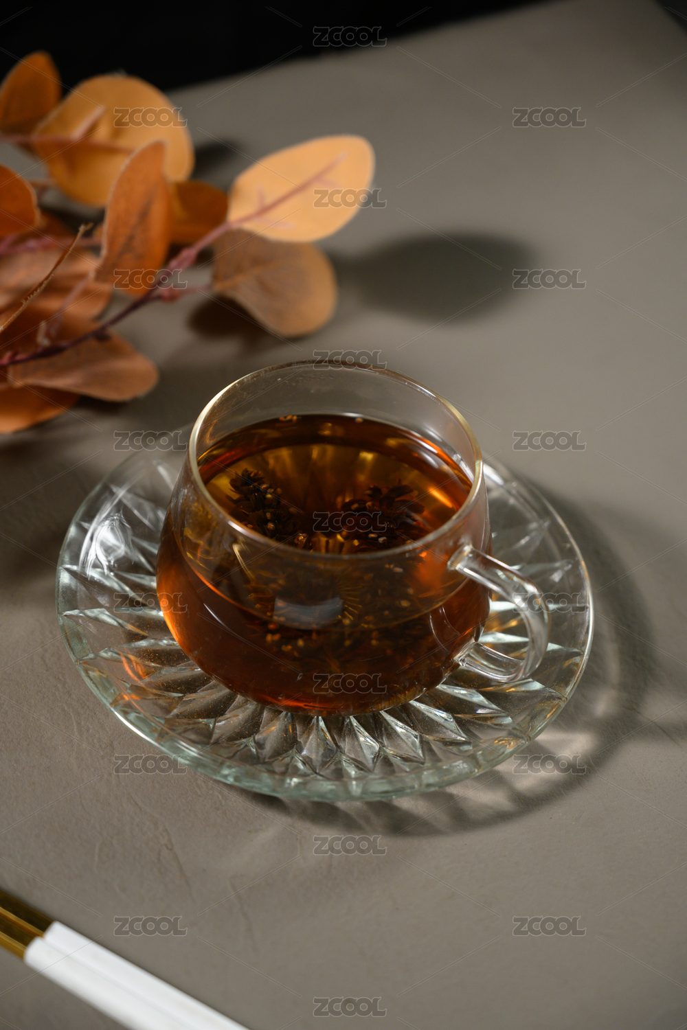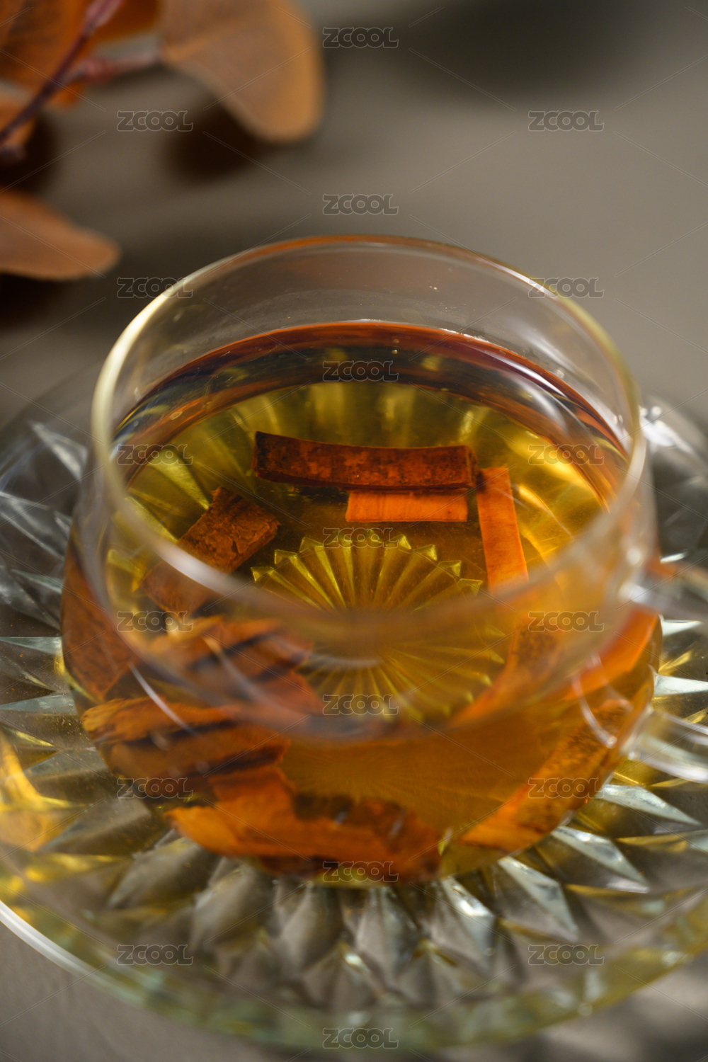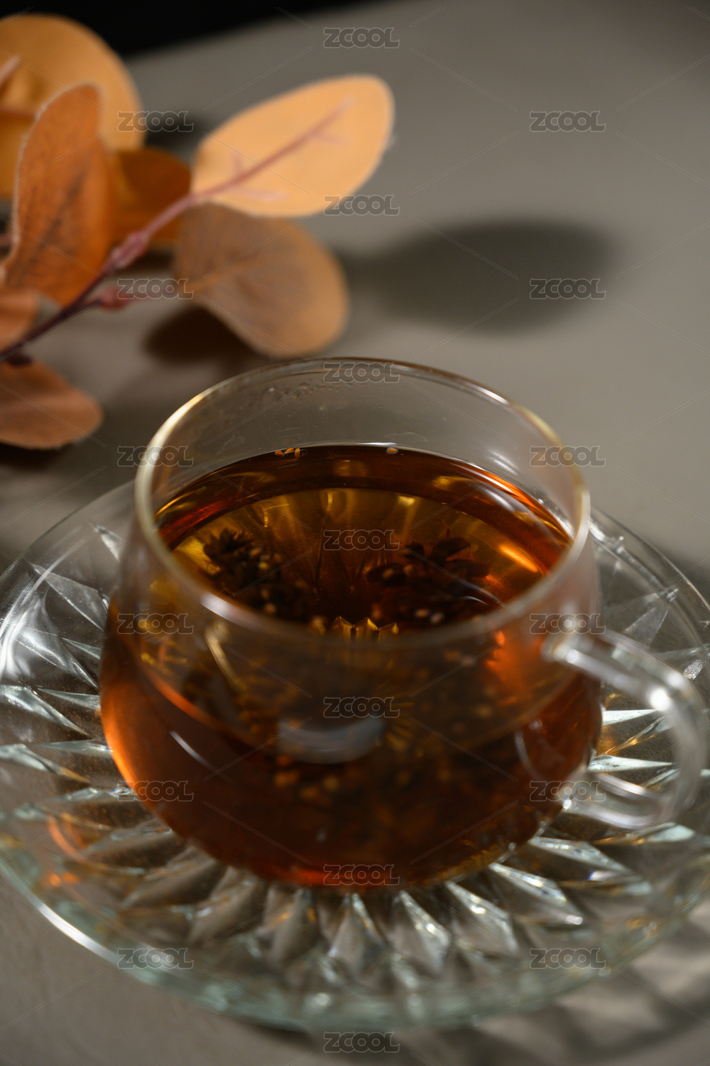 桌面上的杯子里的甘甜可口的胰岛果茶