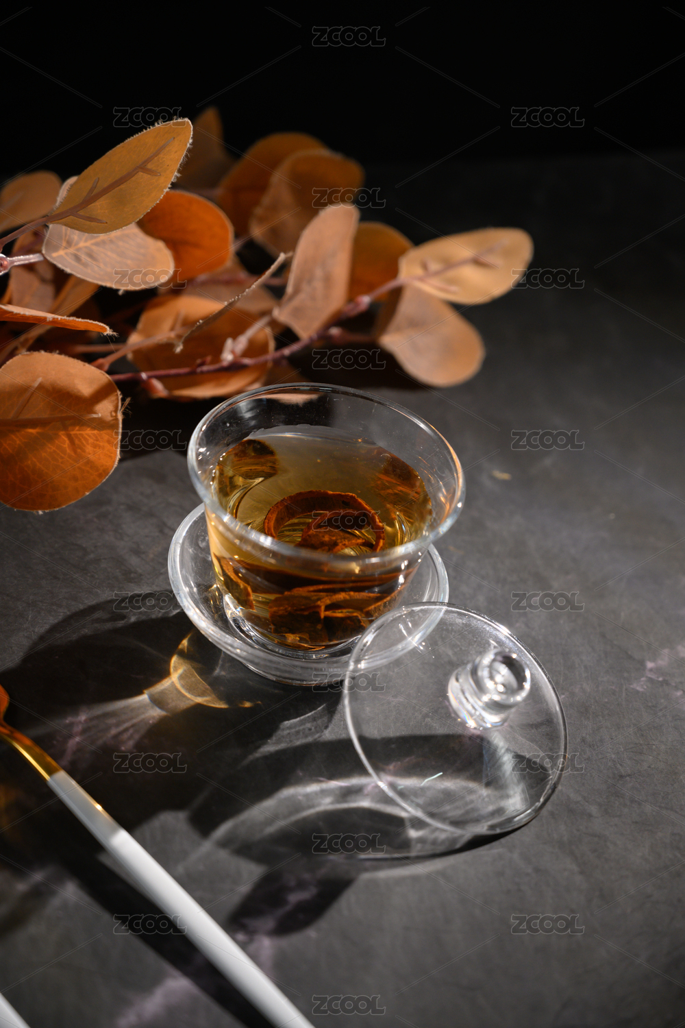 桌面上的盘子里的美味可口的陈皮三宝扎茶
