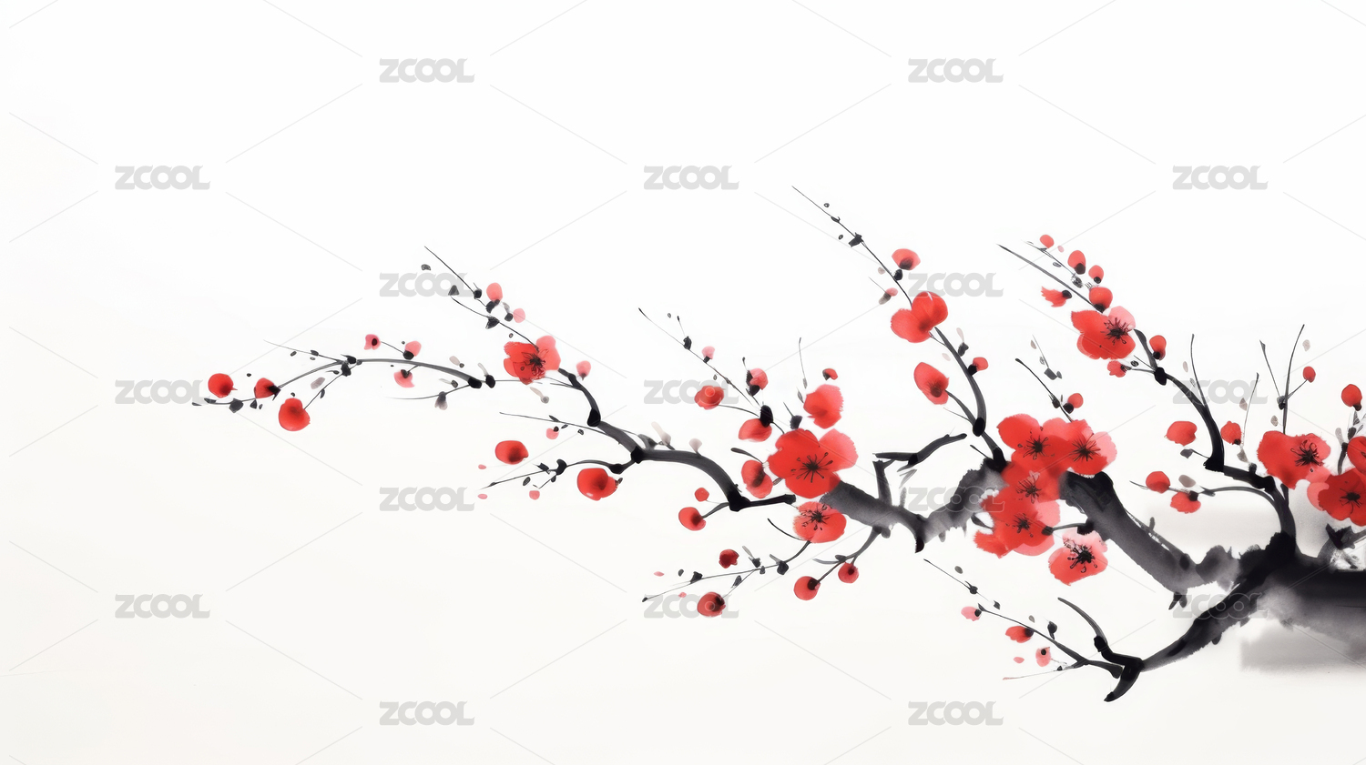 自然,中国画,枝,红色,树,插画,花,花瓣,植物,设计