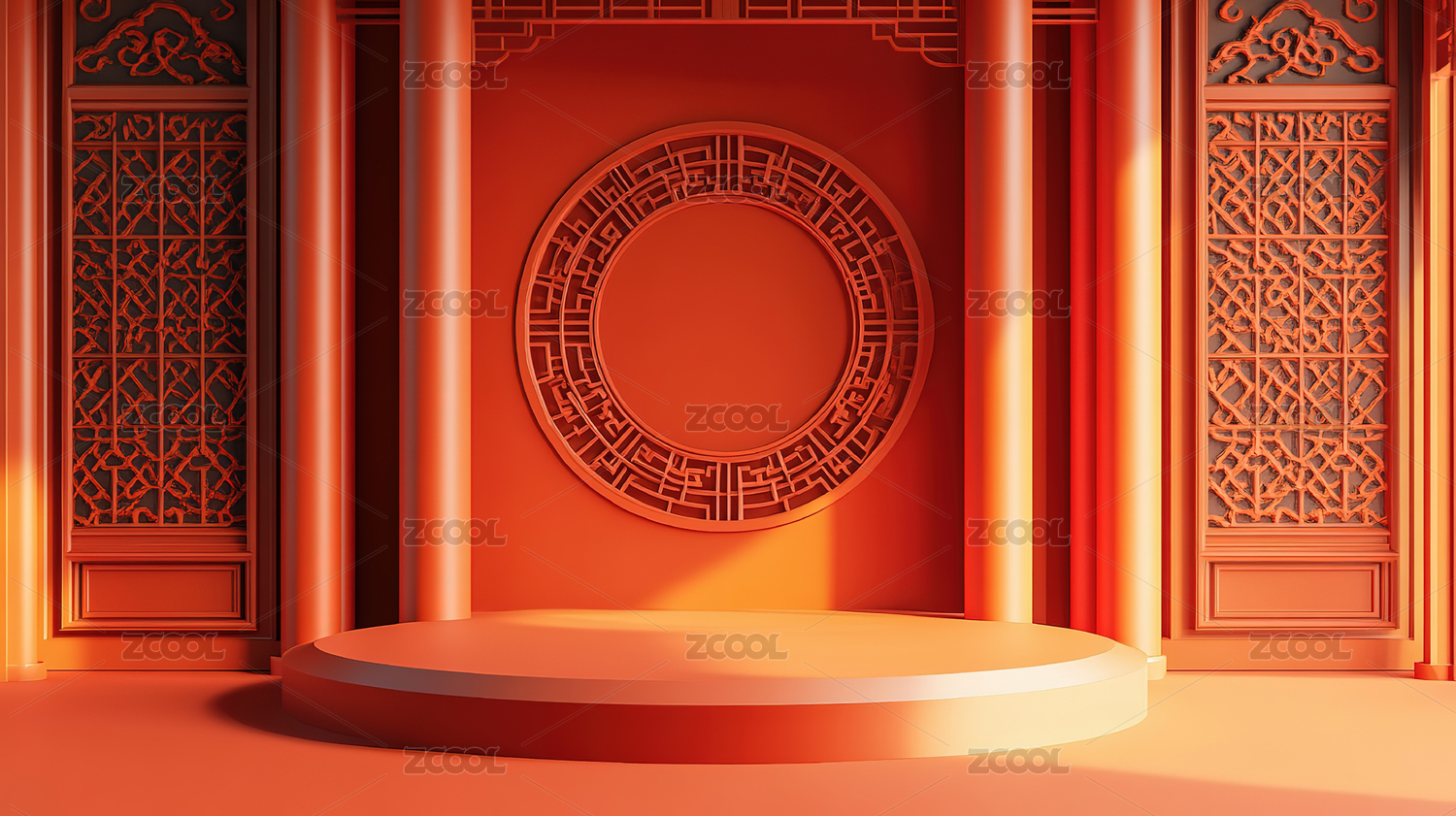 红色背景下的中式传统建筑