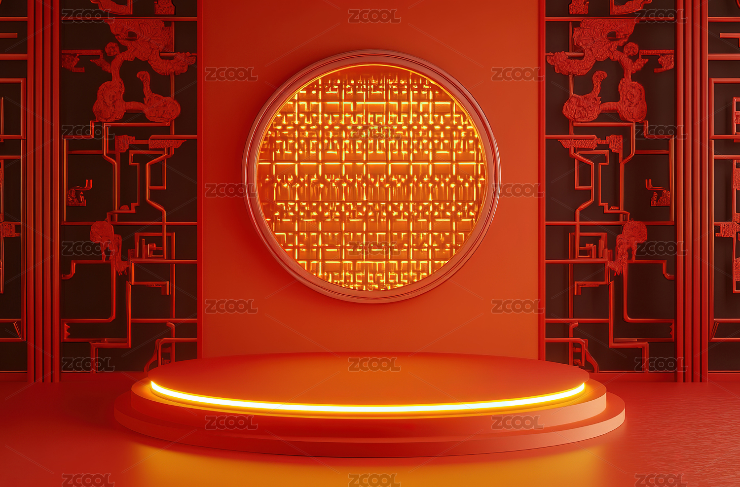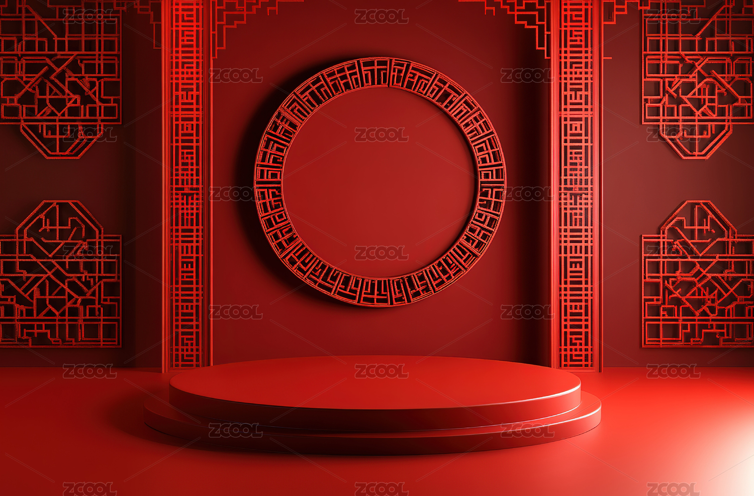 红色背景上的红色展台