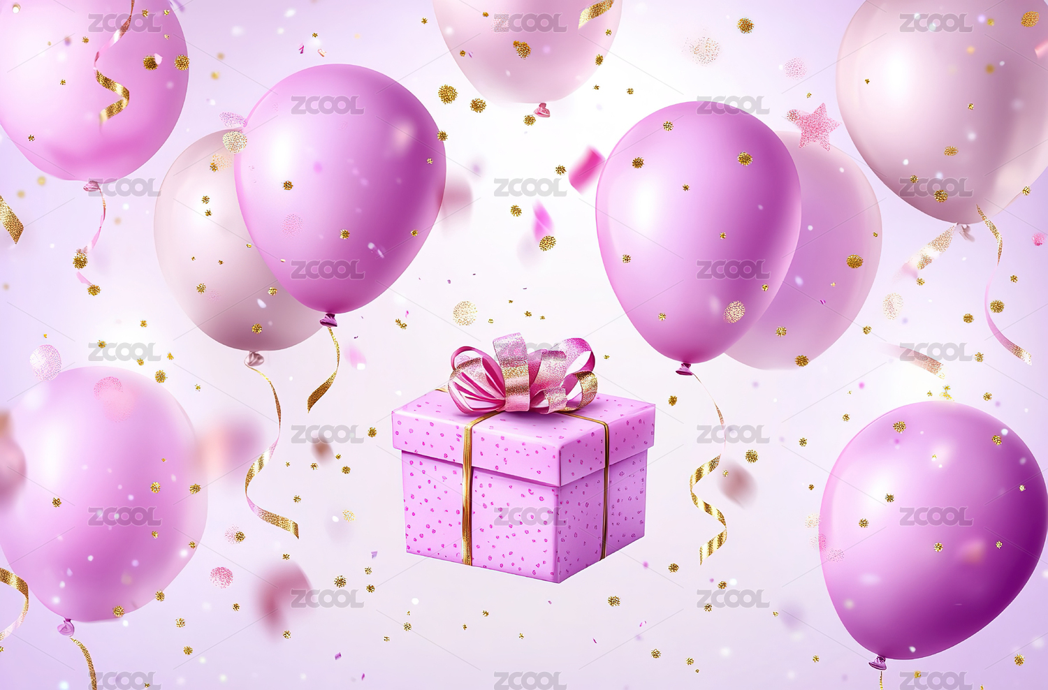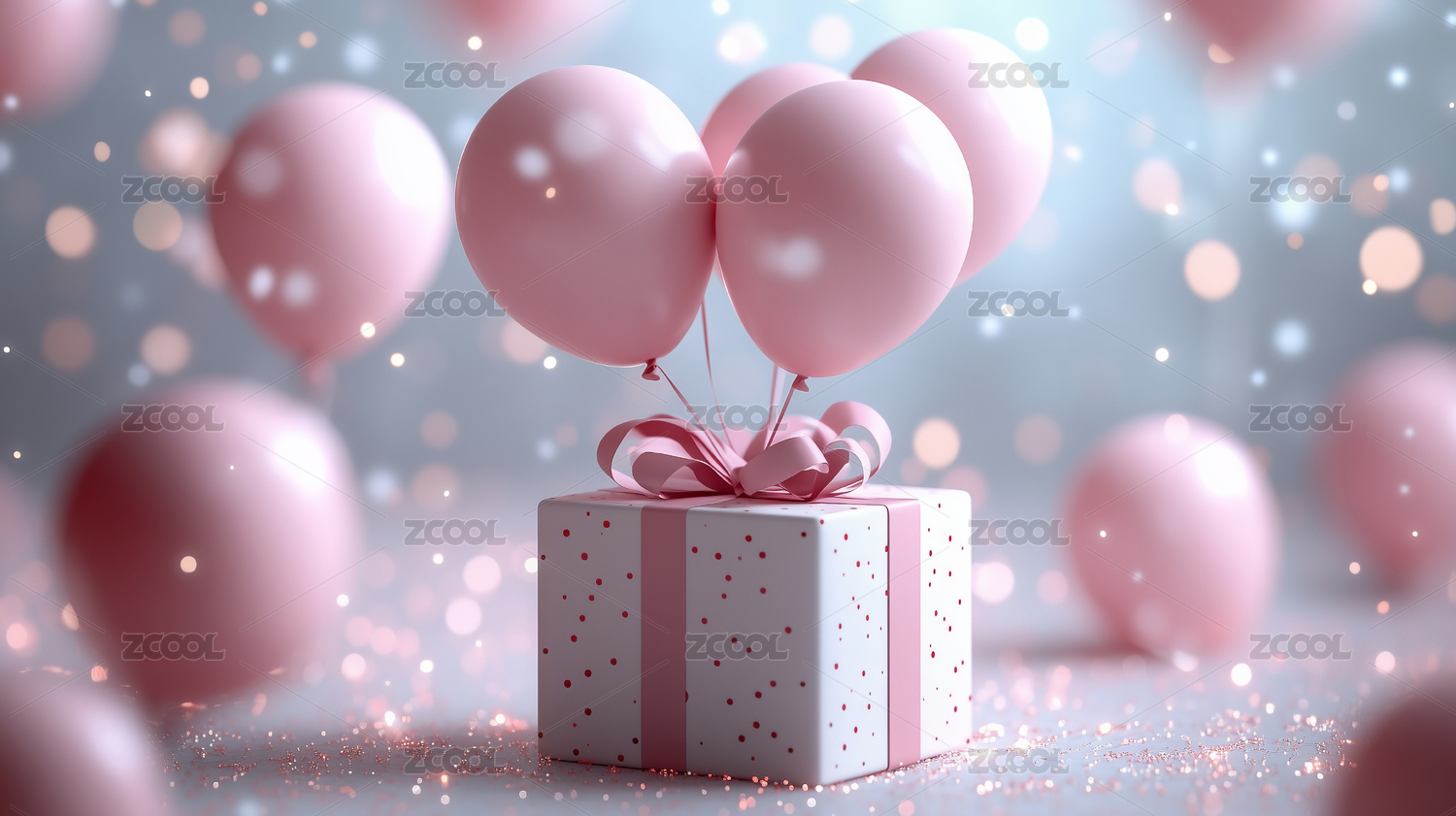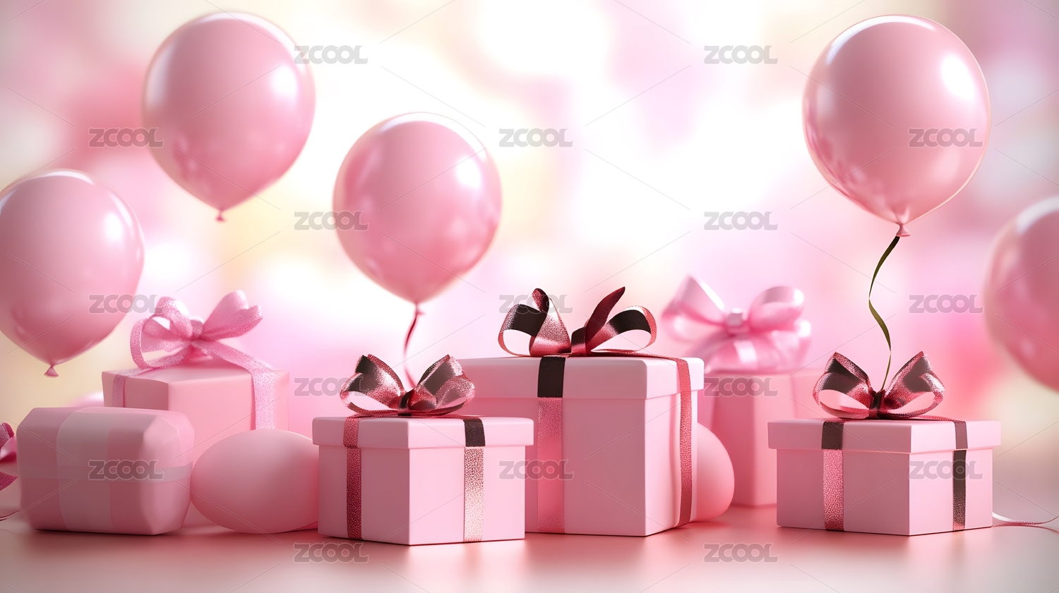 浪漫粉色气球和礼物