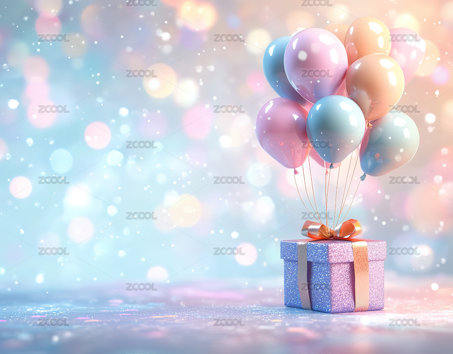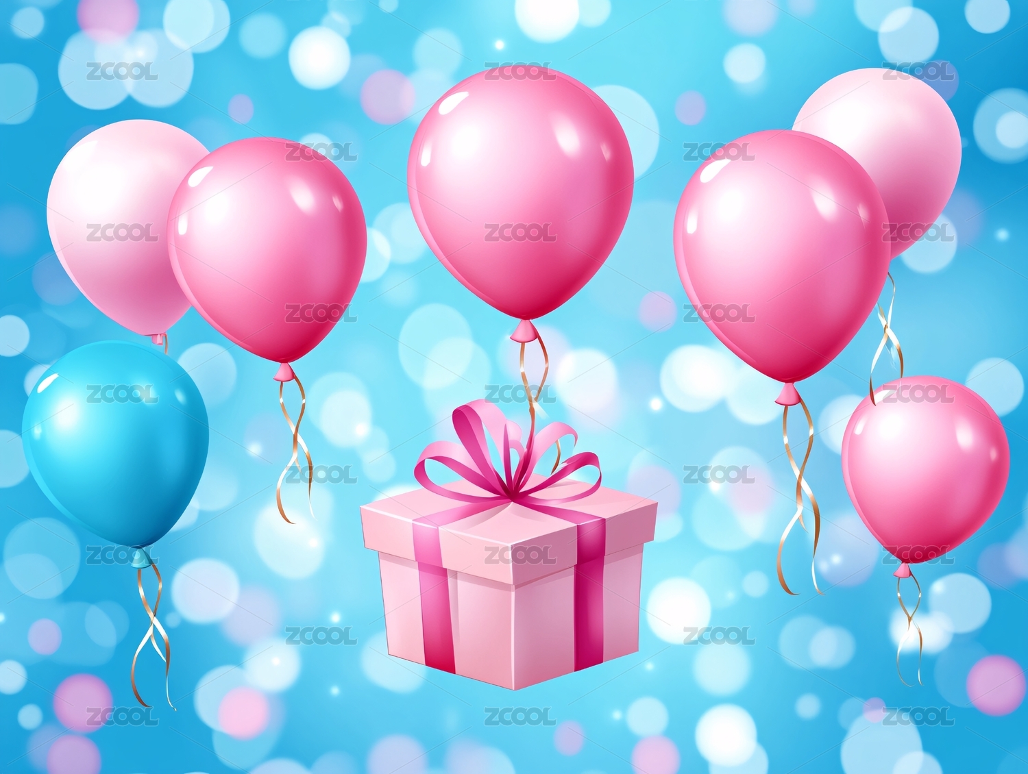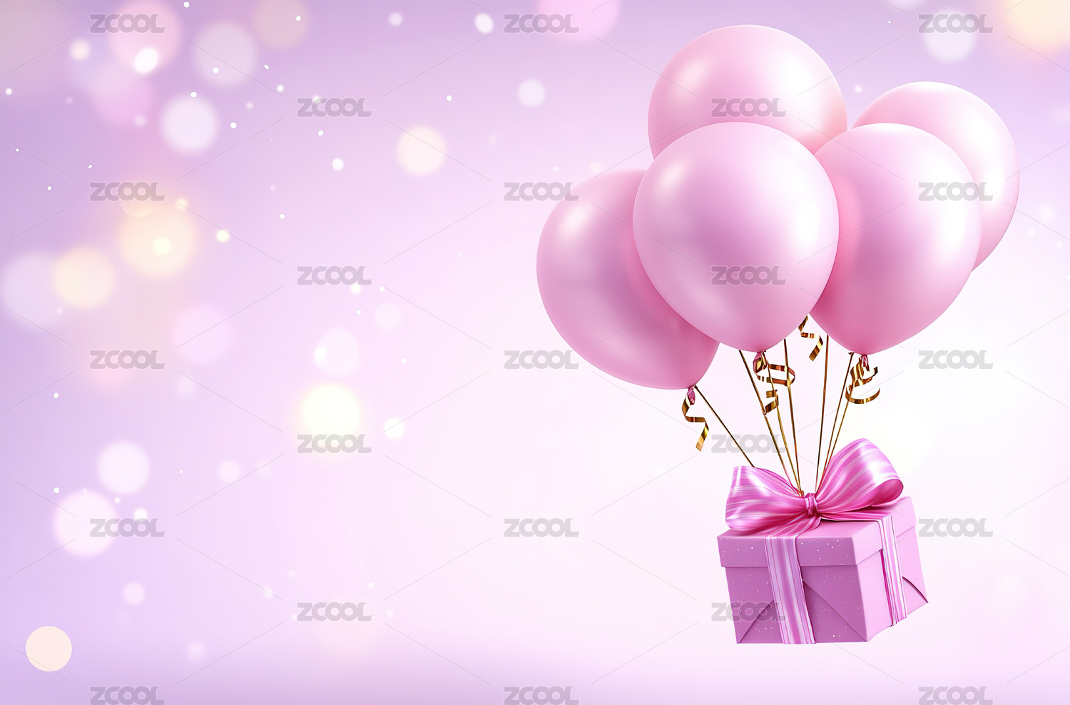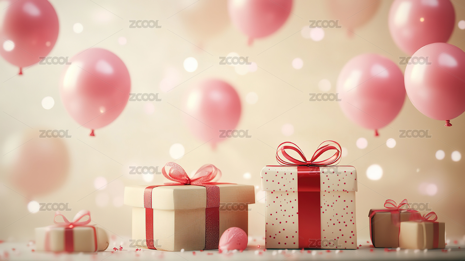 浪漫粉色气球和礼物
