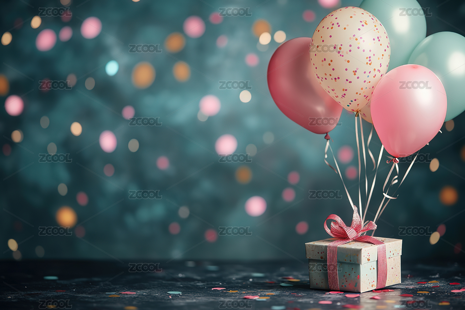 迷人彩色气球和庆祝礼物